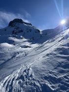 Weg benutzen bis Usserst Hütten. Aufstieg unten sehr eisig und rutschig (ging nur knapp ohne Harscheisen) bis Alt Staffel. Oben immer besser. Fusspassage kurz vor Gipfel geht sehr gut.