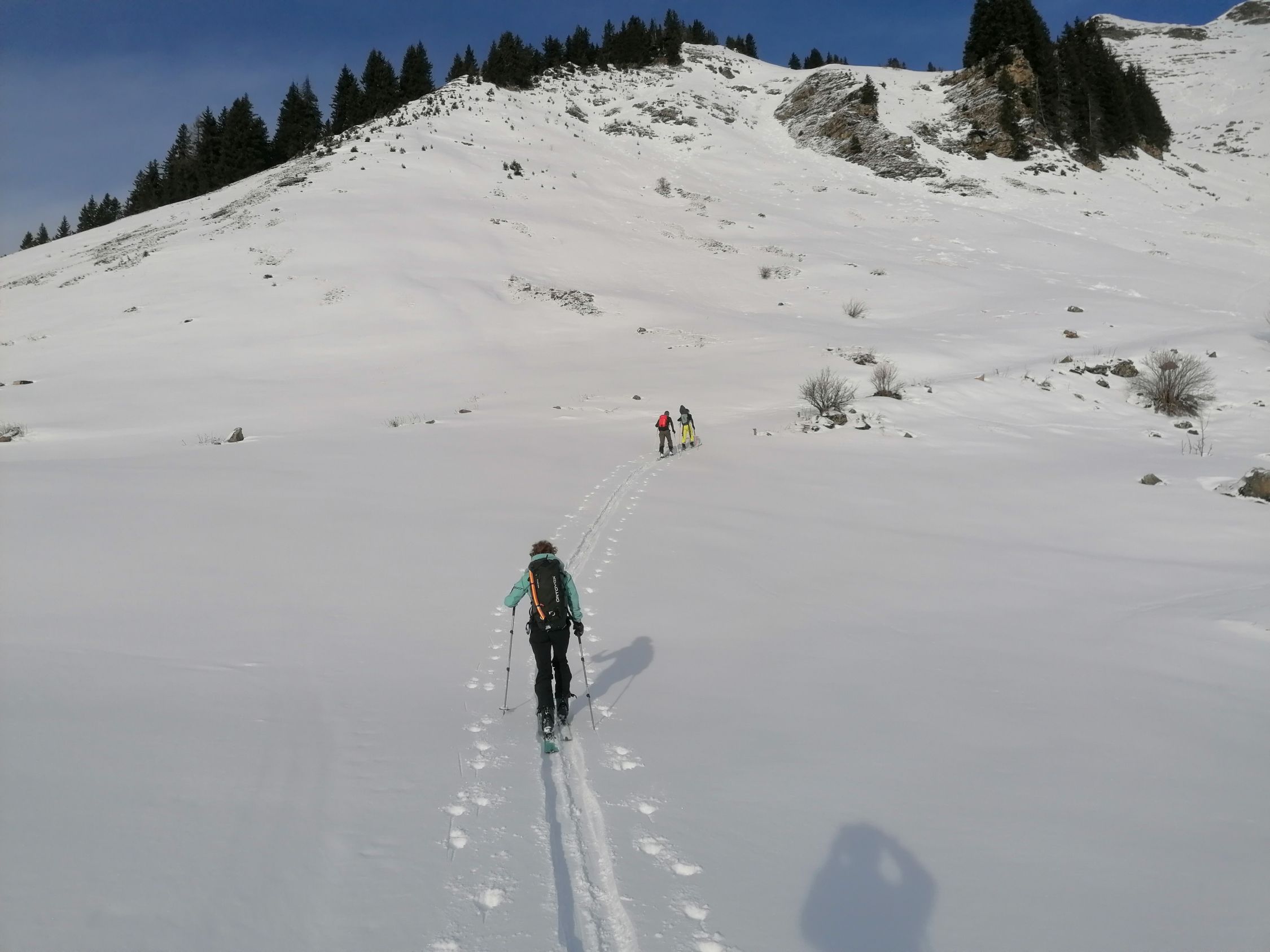 Wir durften Traumverhältnisse erleben. D.h. es Hatte 10cm wunderbaren Pulverschnee auf einer tragenden Unterlage. Es war grandios.