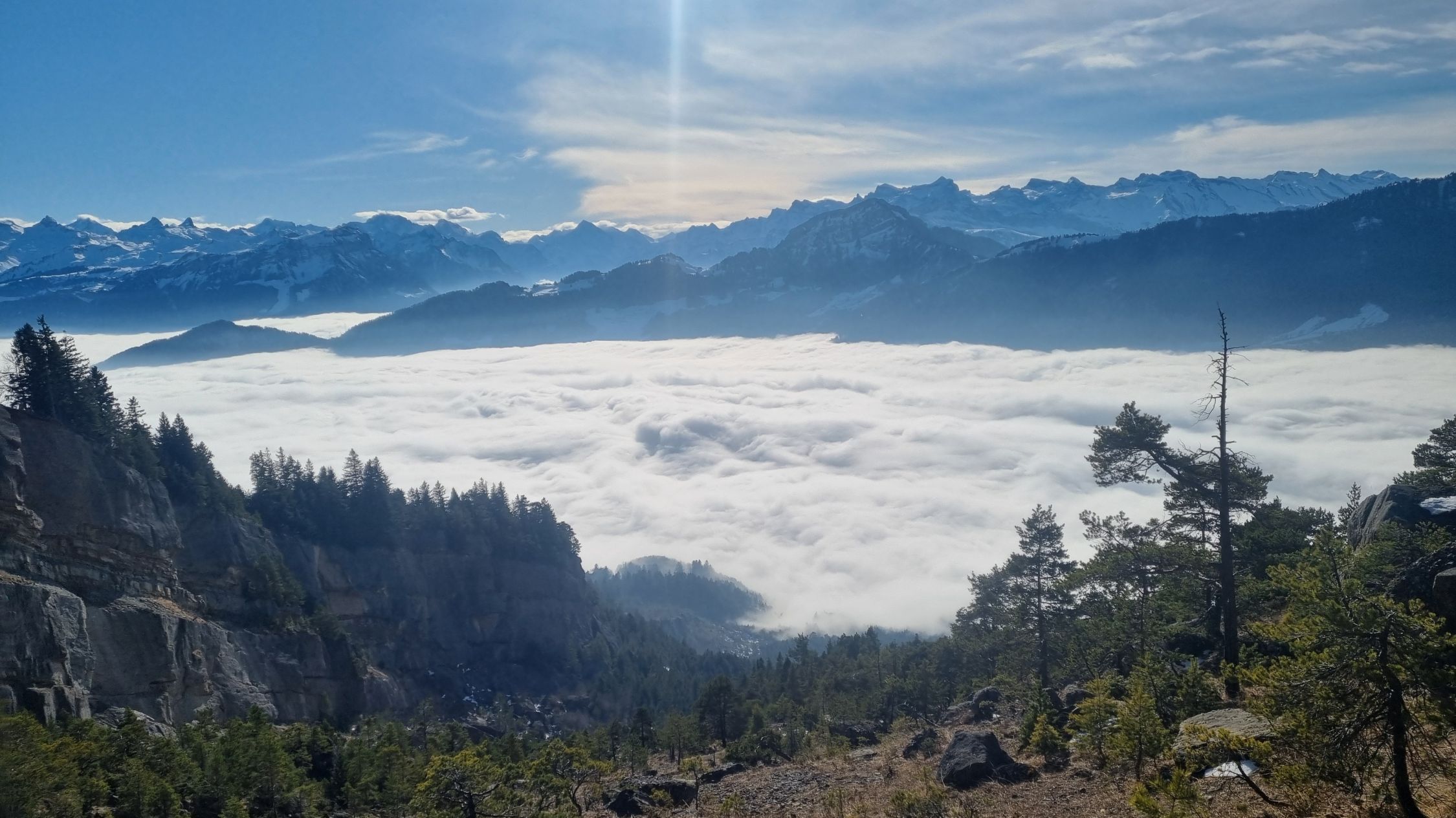 Ein spannender und landschaftlich toller Weg, trocken, einsam, sonnig (ab Gribsch), praktisch schneefrei (wenig Schnee bloss oben auf dem Weiterweg zum Wildspitz). Und mit einzelnen blühenden Enzian. Was will man mehr im Januar? Nun ja, Pulverschnee wäre schöner, aber wenn er nicht liegt, so ist das ein tolle Alternative.