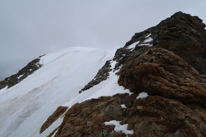 Die Kletterei am Südwestgrat ist tip top zu bewältigen. Der erste Firnteil weist viel Blankeis auf und ist entsprechend vorsichtig zu begehen. Auch auf die Wächte achten. Es hat bereits Anbruchstellen. Der oberste Firnteil zum Gipfel ist gut mit Schnee bedeckt und problemlos zu begehen.