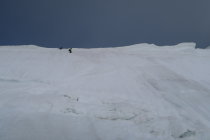 Die Blankeisfelder am Gipfelfirn werden mehr werden wenn kein Schnee fällt.