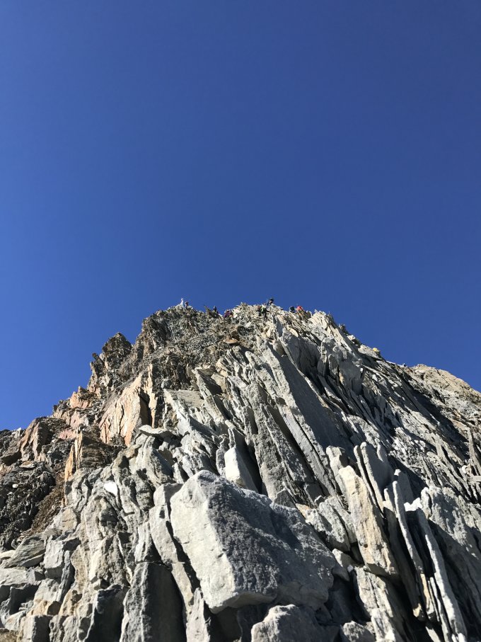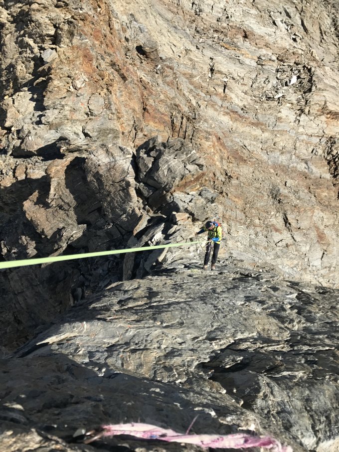 Abstieg vom Nadelhorn wird alles über die Felsen gemacht. Die Umgehungen derselben sind eisig und nicht mehr ausgehakt.