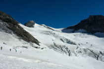 Von oben unbedingt einen ersten Weg bis zur Mitte des Gletschers (Schneefläche )planen.