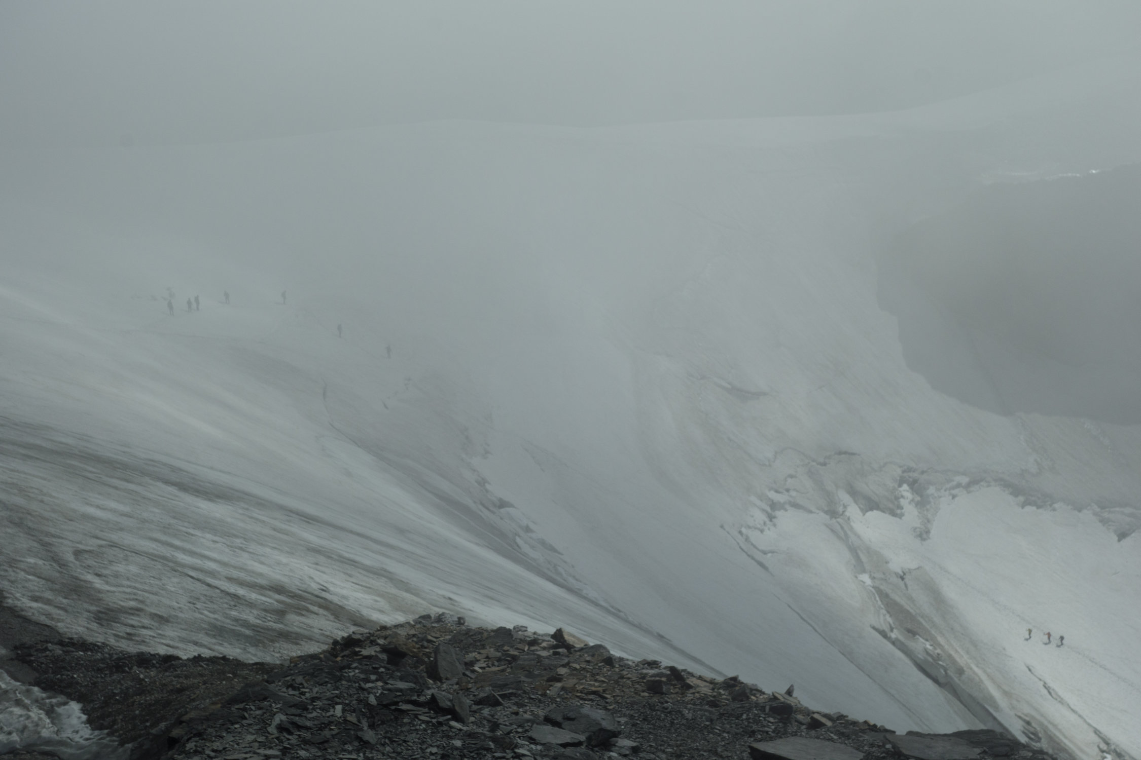 Es empfiehlt sich wenn möglich einen GPS Track im Aufstieg zu machen, denn im Abstieg ist der Weg durch die Spalten nicht immer leicht zu finden. Hier im Whiteout zu stehen ist sicherlich kein Spaß. Uns hat das sehr geholfen. Es waren ausser uns nur 2 Seilschaften ab Fridolinshütte und eine von der anderen Seite unterwegs. Haben etwas unter 6 Stunden zum Gipfel und knapp 4 wieder zurück gebraucht.