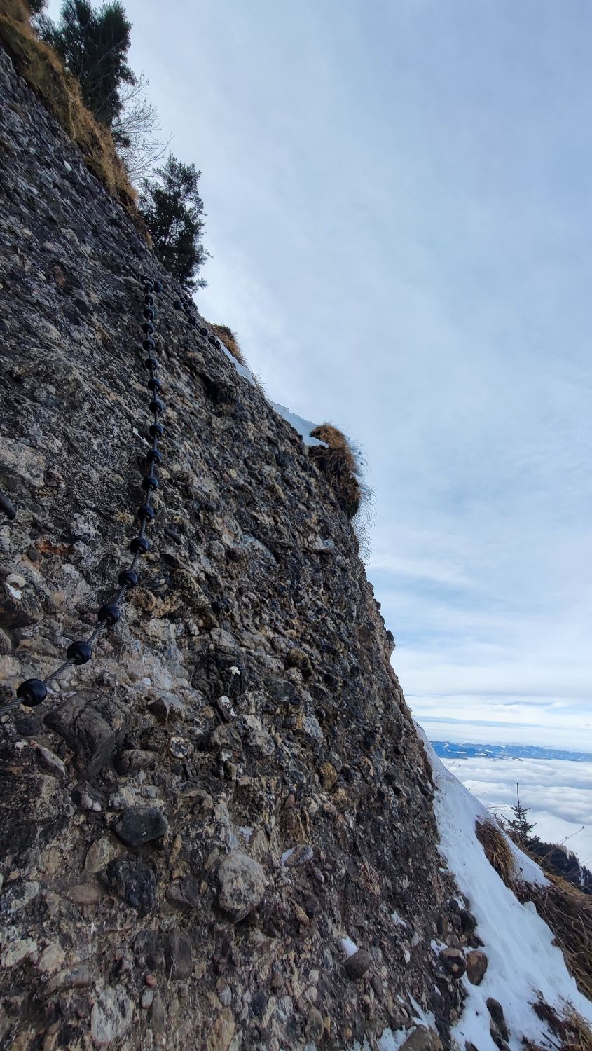 Heute reichten Grödel, alles gut gespurt, oberhalb Arschbagge griffig, unterhalb teilw. eisig.