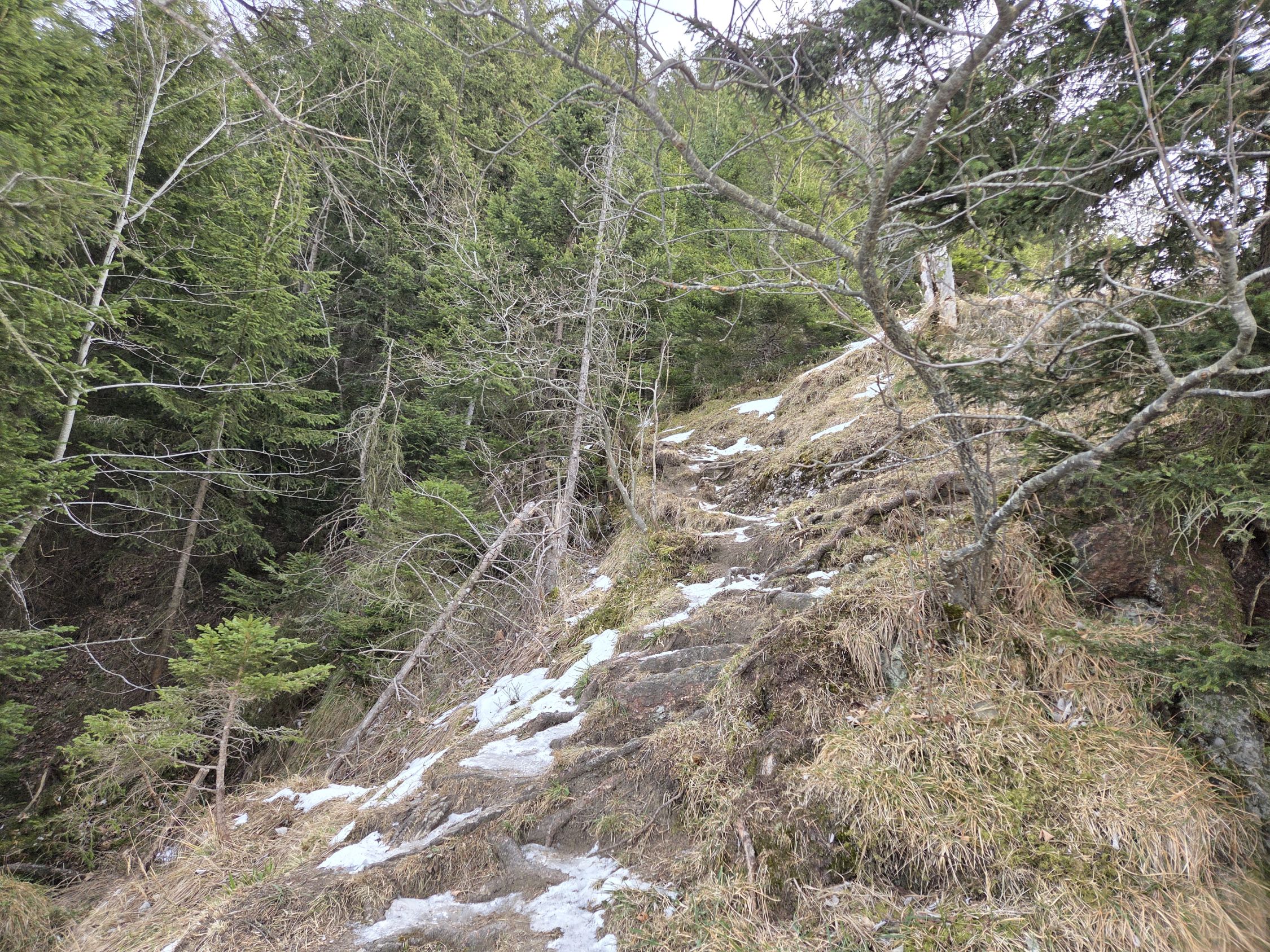 Weg ist schneefrei. Ab Geissrügge über die Treppen dann an div. Stellen im Wald Schnee und recht glatte Stellen. Hier helfen Grödel. Ansonsten teils etwas mühsam über nicht-glatte Stellen ausweichend.