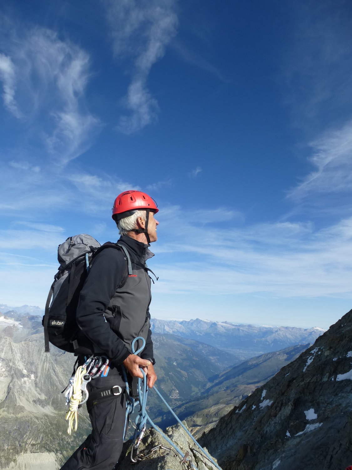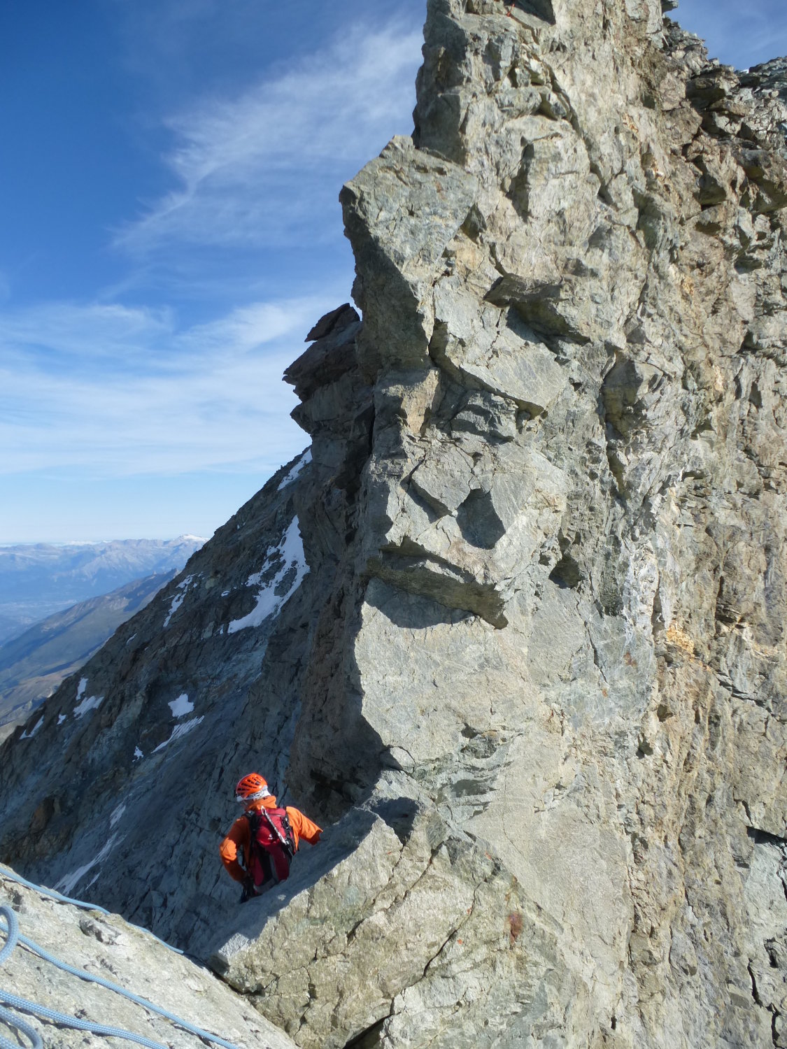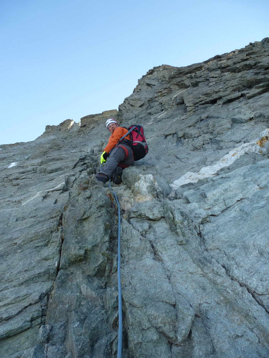 Selbst das Couloir mit den Eisenstangen hinter dem ersten großen Gendarm war angenehm zu klettern. Am Anfang etwas brüchig.