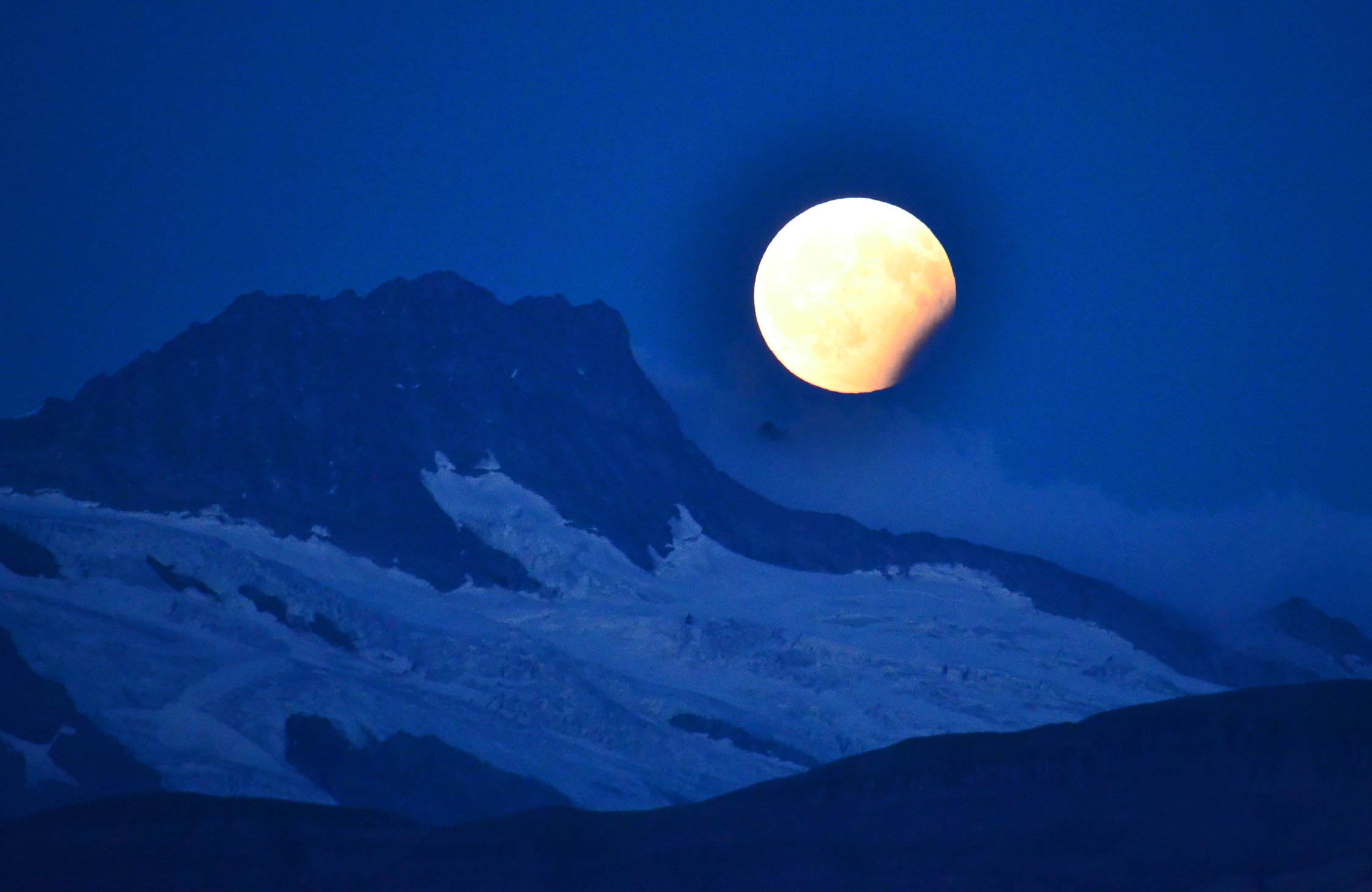 Eigentlich wollte ich nur ein bisschen hinaufsteigen um den partiellen Mondfinsterniss zu sehen. Da dieser nur kurz über den Horizont sicht sein würde, wollte ich so hoch wie möglich steigen. Als Monaufganszeit wurde 20:42 Uhr angegeben. Allerdings liess der Mond offenbar auf sich warten und blieb mir nichts anders übrig als weiterlaufen sodass ich dann noch vor den Mondaufgang war ich dann bereits oben... und dann noch warten und dann, erst um 21.08 kam er dann.