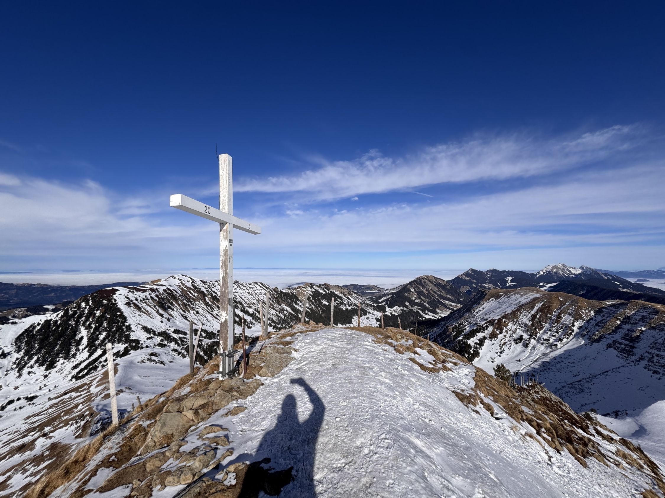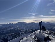 Gipfel Rickhubel kein Schnee, Richtung Fürstein muss man ca. 500m laufen. Danach genug Schnee bis auf den Gipfel. Oben stark verfahren, teilweise etwas hart. In den Schattenhängen sogar etwas Pulver gefunden.