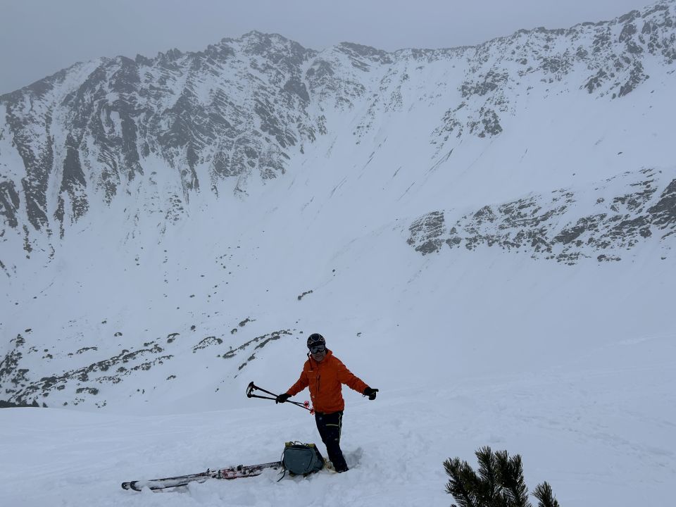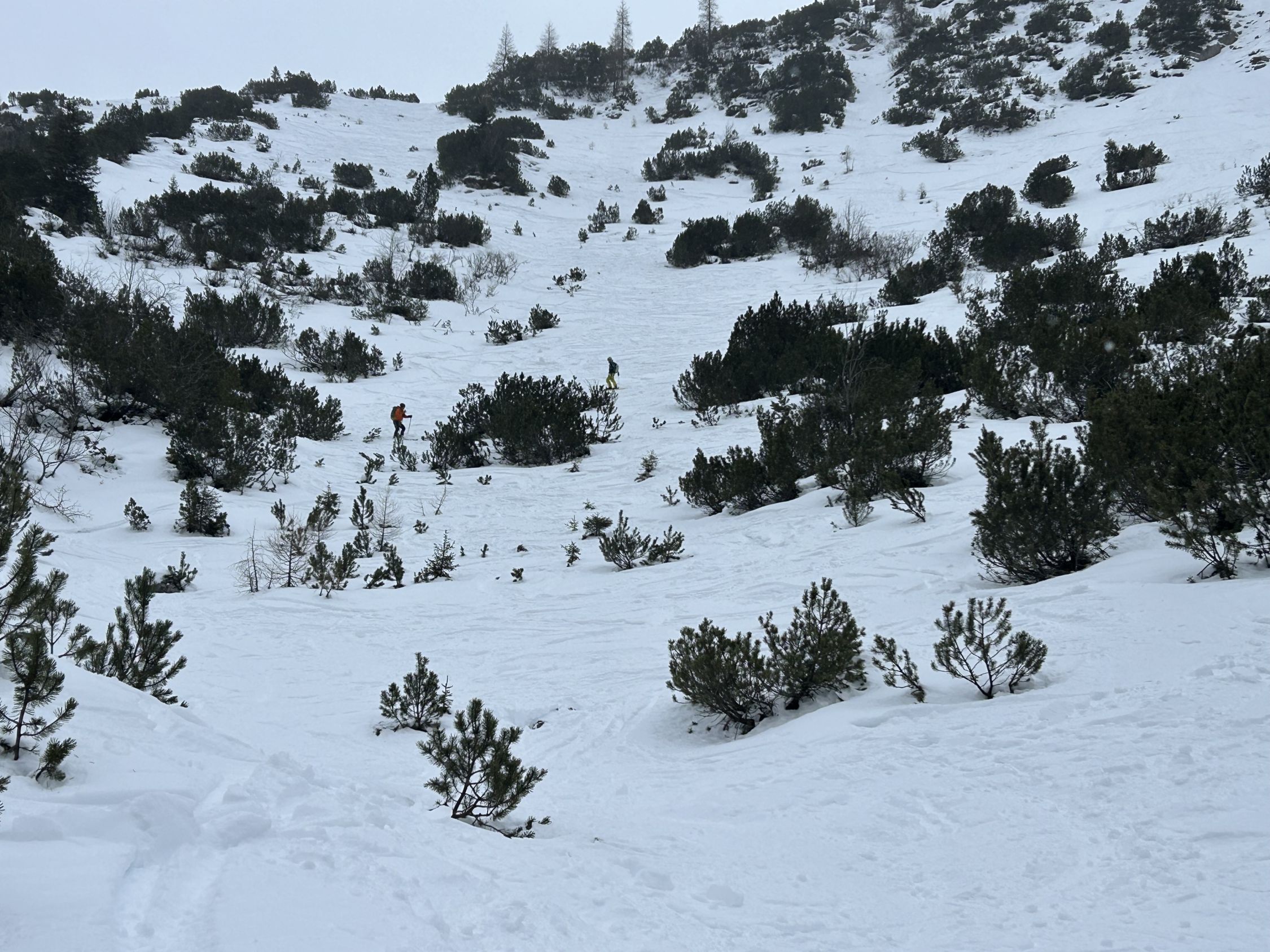 Natürlich allgemein wenig Schnee, im steilen Wald haben wir die Skier ca. 100 hm