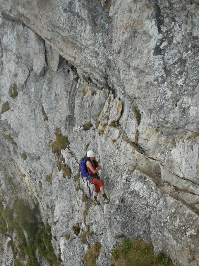 Wetter: Nebel. Die Weitsicht reichte bis zum Lac de la Gruyère, und bis in den Jura. Es war sehr schön, bei diesen Bedingungen den Klettersteig zu ersteigen.