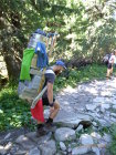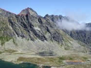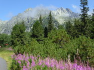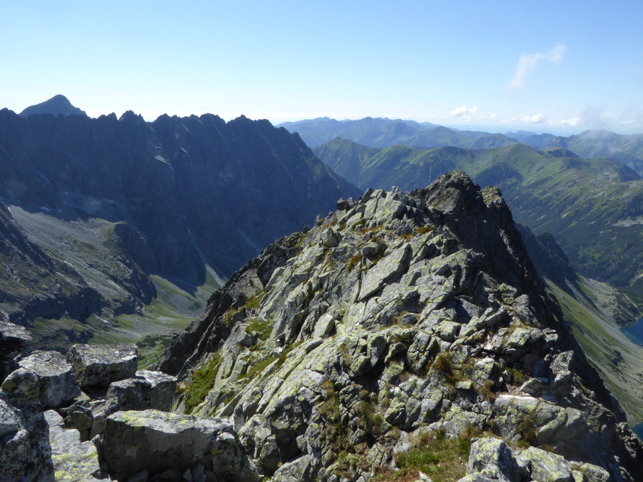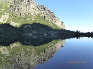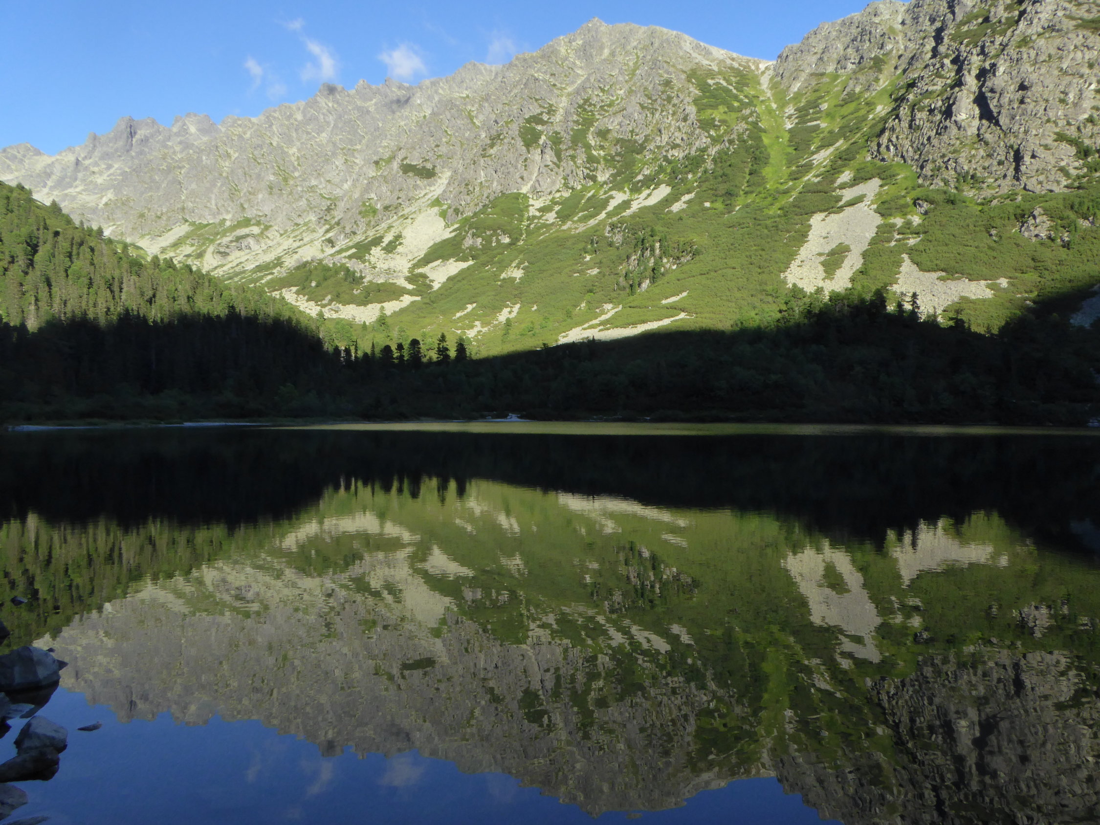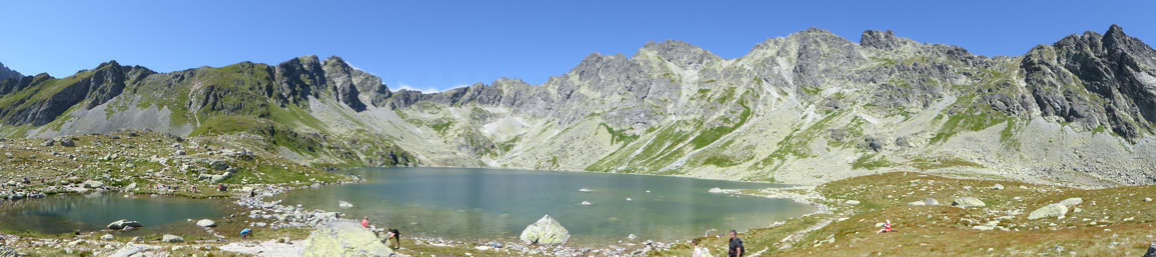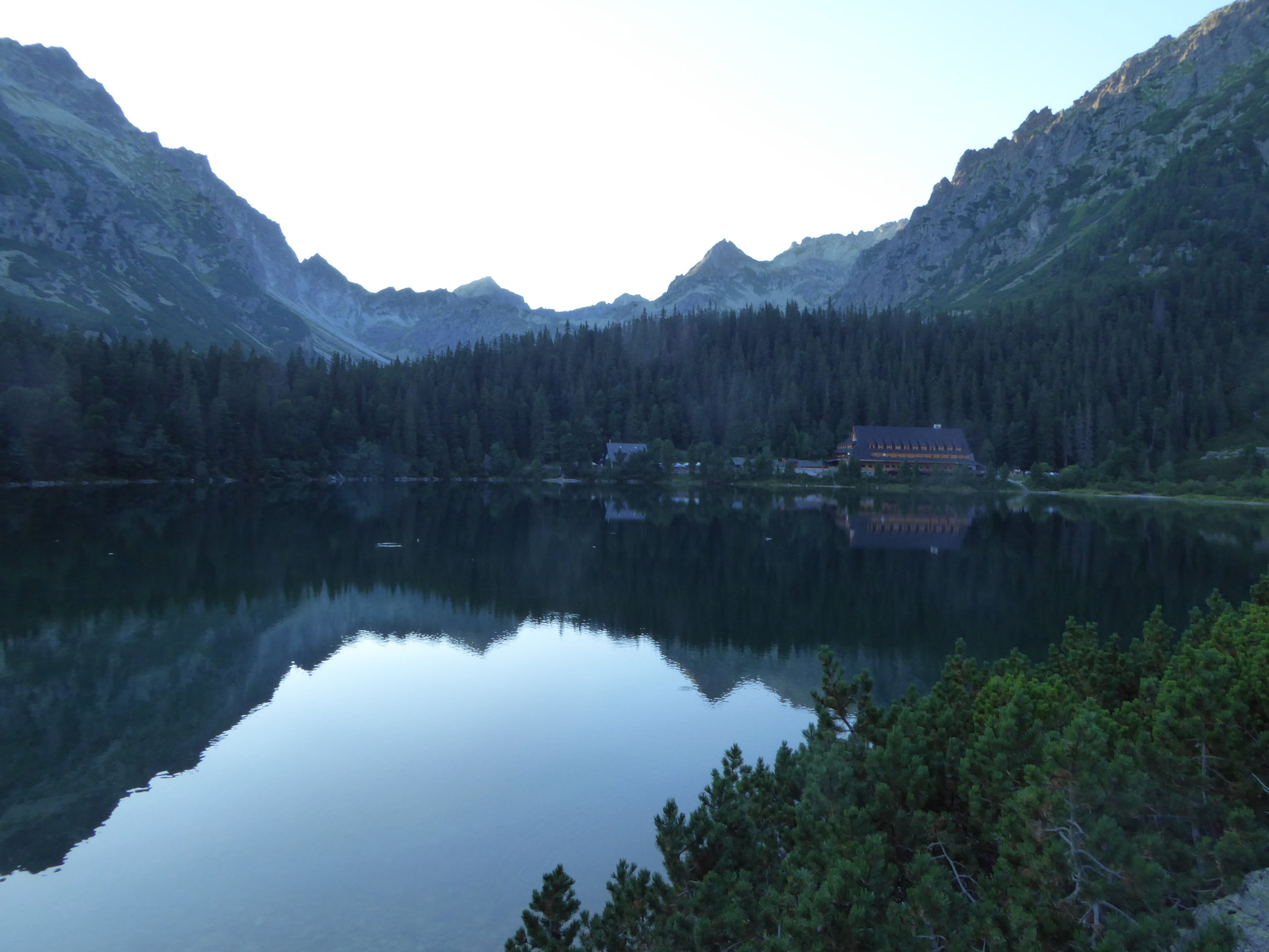 Die Kaltfront vom Montag (7.8.) hat mit dem Sommer kräftig aufgeräumt. Es ist herbstlich kühl. Die Hohe Tatra liegt bis 10 Uhr unter einer tiefliegenden Wolkendecke, um 11 Uhr kommt die Sonne langsam aber stetig durch die Wolken. Hauptgipfel ab etwa 13 Uhr bis zum Abend wechselseitig in Wolken. Im Hochtal des Vel´ké Hincovo pleso mit Gipfel Kôprovský štit dagegen wolkenloser, strahlend blauer Himmel.