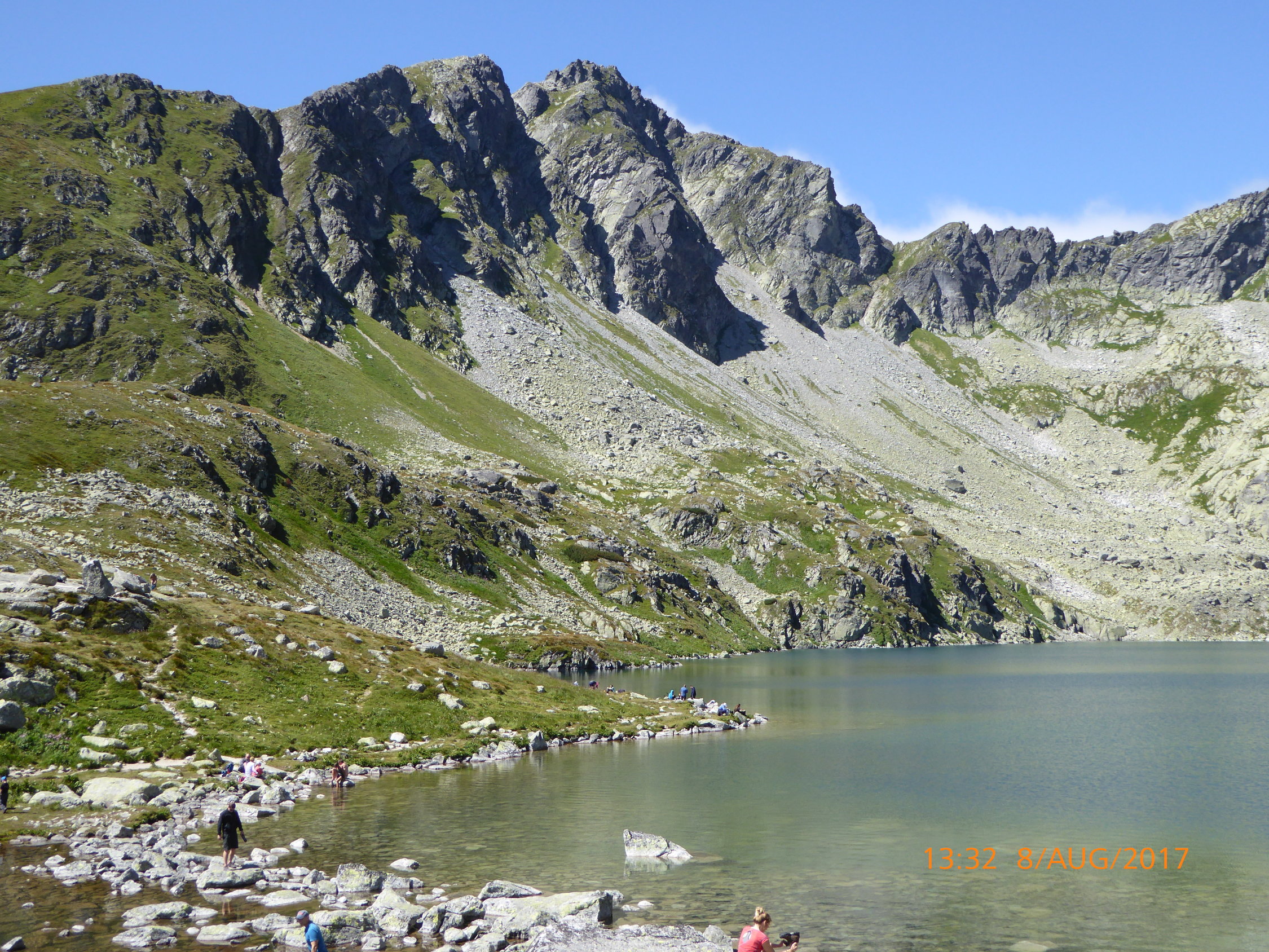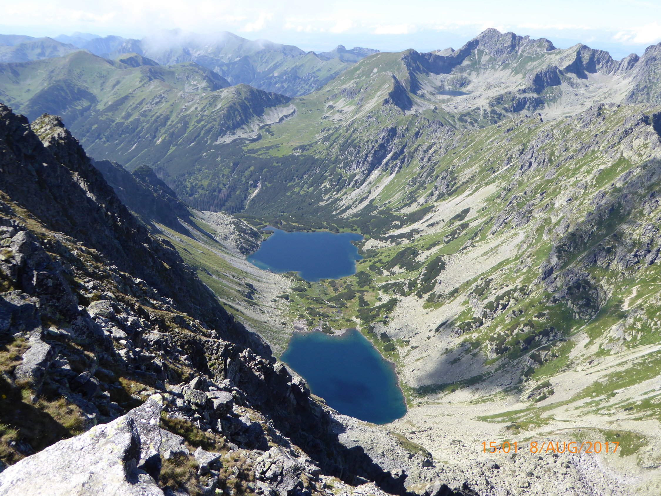 Tour wurde am Dienstag, 8.8.2017 durchgeführt. Ausblick auf heutiges Datum (13.8.) aktualisiert. Mangels Internet in dieser pachtvollen Wildnis erst jetzt eingestellt (Original-Ton des Hüttenwirtes der Chata Popradské pleso: WiFi nemáme, rozpra´vajte sa medzi sebou – wir haben kein WiFi, unterhaltet Euch miteinander! Wir parken direkt an der Hauptstrasse 537 etwas hinter dem Abzweig zur Tramway-Haltestelle Popradské pleso (da kostet es nichts). Eigentlich hatten wir den Rysy (2499 m; slowakisch-polnischer Genzgipfel) im Visier. Da die aufsteigende Feuchtigkeit vom Vortag vermutlich zur Wolkenbildung in den Kammlagen führt, fällt die Wahl auf das Hochtal des viertgrössten Sees der Tatra (Vel´ké Hincovo pleso). Falls der dahinter liegende Gipfel Kôprovský štit (2367 m) wolkenfrei ist, nehmen wir ihn mit. Das haben wir richtig eingeschätzt. Im Hochtal und am Gipfel den ganzen Tag über strahlend blauer Himmel bei guter Fernsicht, während der Rysy und die anderen umliegenden Gipfel zeitweise in Wolken gehüllt sind. Der Bergsee Vel´ké Hincovo pleso (53 m tief) ist von November bis Juli mit einer Eisschicht bedeckt, maximale Temperatur im Sommer 8°C. Östlich, vom Kôprovský štit teilen sich Polen und Slowaken auf wenigen Kilometern den insgesamt 26 km langen Hauptkamm der Tatra vom ersten felsigen Berg Svinica (2301 m) – siehe Bild 10, über Cubryna/Čubrina (2376 m) und die Mengusovské stity bis zum Rysy (2499 m), der somit der höchste Gipfel Polens ist (höchster Berg Kozi Wierch, 2291 m, ebenfalls in der Tatra). Am Rysy verlässt die polnische Grenze den Hauptkamm über einen Nebenkamm nach Norden. Polen besitzt somit etwa nur ein Fünftel des Gebietes der gesamten Hohen Tatra. Nordwestlich dieser schmalen polnischen Spange liegt der weltbekannte polnische Skiort Zakopane. Die schräg herabziehende Rinne vom Mengusovské sedlo auf den Schuttkegel östlich oberhalb des Bergsees Vel´ké Hincovo pleso (siehe Bild 9) wurde früher von polnischen Wilderern benutzt. Diese einzige Schwachstelle im Massiv ist auch die heutige (unmarkierte) Aufstiegsroute auf den Sattel und weiter zum Gipfel des Vychodny Mengusovské štit (2398 m). Der Satan (2416 m) erhielt seinen Namen nach einer Sage vor mehreren hundert Jahren, nach der der Satan und andere Teufel die Schätze im Berginnern durch herabstürzende Felsbrocken vor Schatzsuchern schützen. Wir verlassen den Zauber dieser grandiosen, weitgehend unberührten Berglandschaft und kommen wieder.