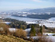 Ungeahnt sehr abwechslungsreiche Tour durch sanften Nagelfluh-Gebirgszug in den Oberallgäuer Voralpen mit Panorama-Ausblicken vom Alpkönigblick zum Hauptkamm der Allgäuer Alpen zu Hohe Bleick, pyramidenförmigen Hirschberg, Alpspitze weiter rechts davor, Hochplatte rechts dahinter, Reuter Wanne rechts davon weiter vorn, Säuling rechts dahinter, Breitenberg und Aggenstein, Große Schlicke und rechts dahinter die Zugspitze, sowie rechts daneben das Trio von Kellenspitze, Gimpel und rote Flüh (v.l.n.r.). Weiter nach Westen erkennt man das bewaldete nahe Wertacher Hörnle. In Richtung Westen folgen dann die Silhouetten von Gaishorn, Rauhhorn, Kugelhorn und Kleiner Daumen. Ferner dann das Rubihorn und die auffällige separate Marchspitze im Hintergrund. Weiter rechts präsentiert sich dann die Nagelfluhkette mit dem Hochgrat. Den Horizont im Westen begrenzen Alvier, Tödi, Altmann und Säntis bei klarer Sicht.