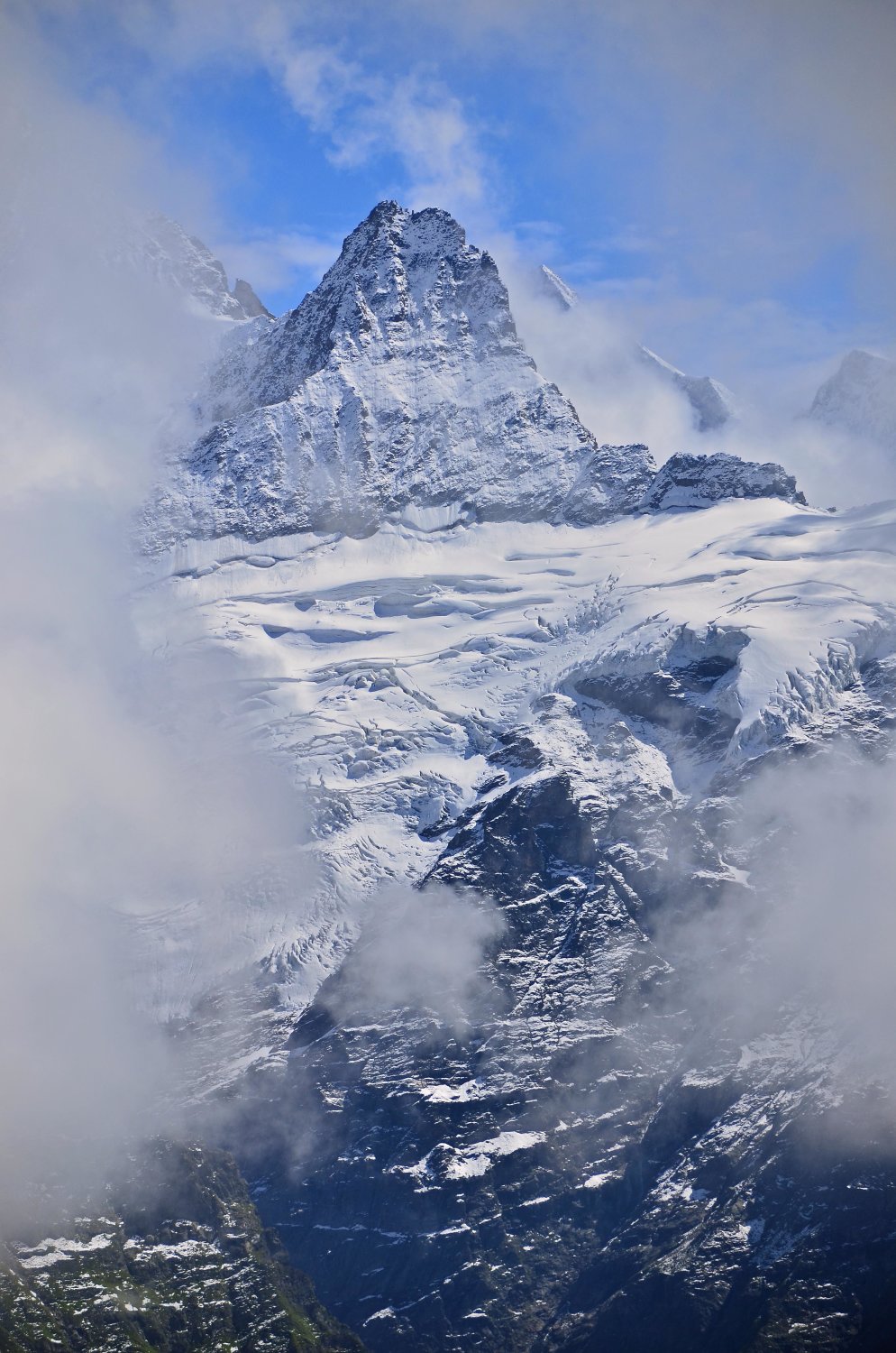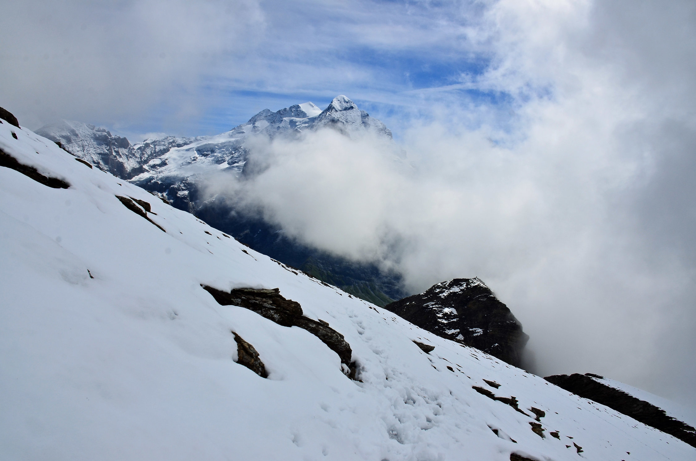 Ich wollte die höchsten Berner mal wieder im schönen Kleid sehen der durch den Neuschnee gegeben wurde. Trotz Nebelblick am Gipfel war es eine lohnende kurze Tour. Beim Abstieg begegnete ich noch einen Japaner und ein Pärchen in kurzen Hosen die zur später Stunde noch hinauf wollten...