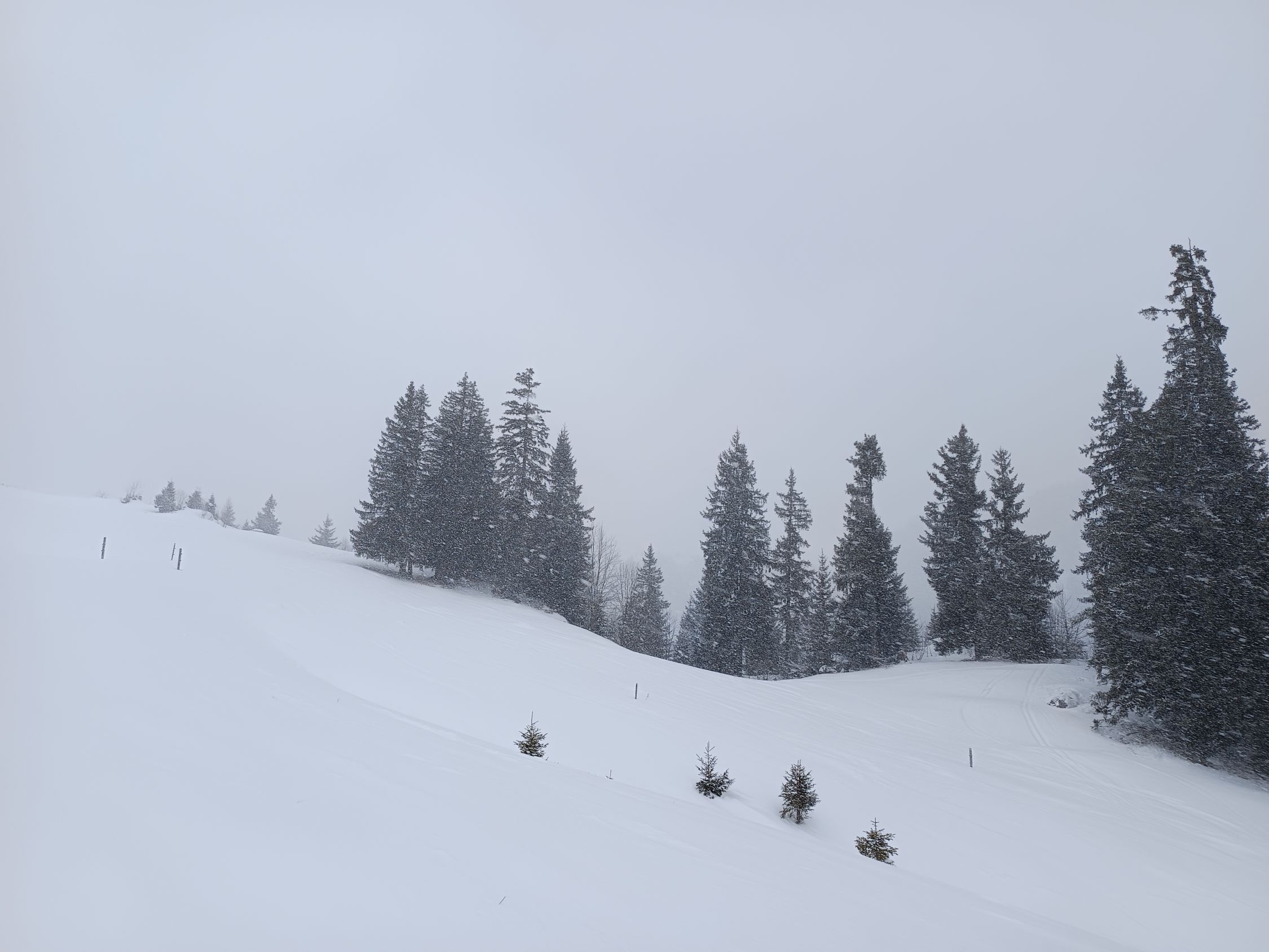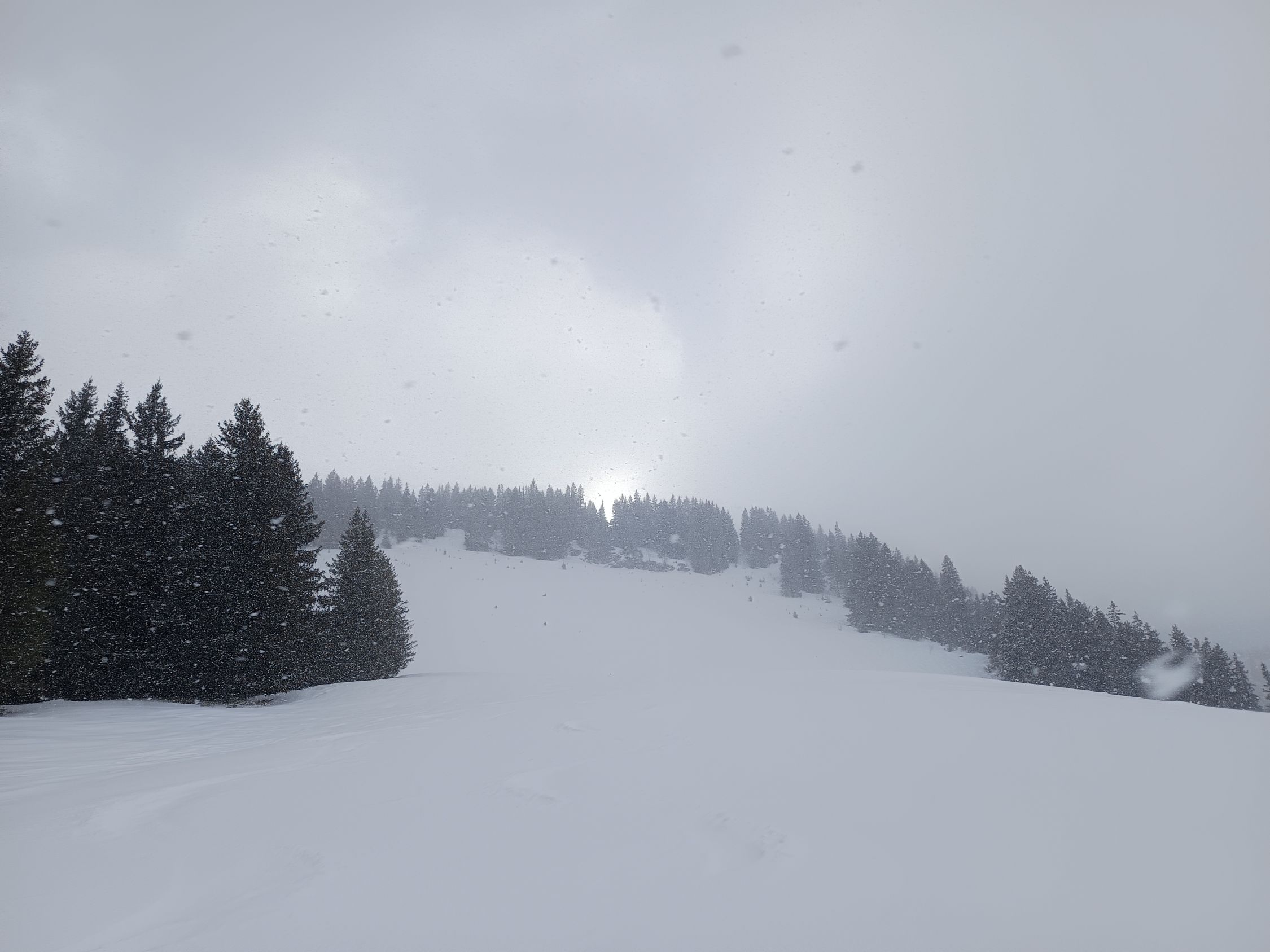 Ein Schäumchen Neuschnee, gar nicht schlecht auf dem verfahrenen harten Untergrund