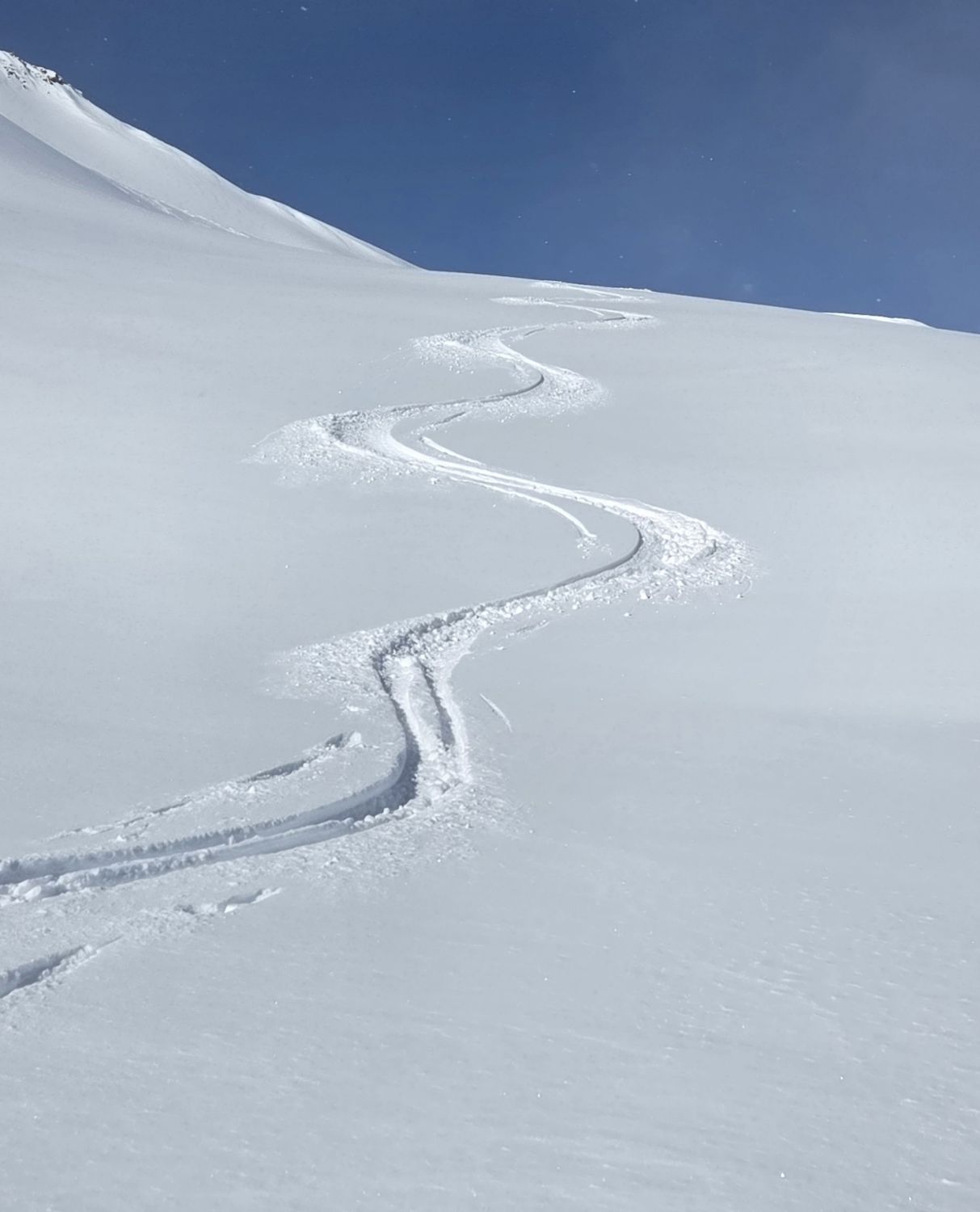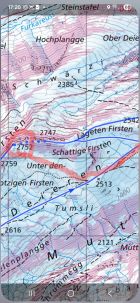 Trotz der vielen Leute gestern findet man immer noch Unverspurtes. Im unteren Teil ist natürlich alles verfahren. Letzte Nacht gab's nochmals 3 cm - man wird ja bescheiden... Mit Zusatzschlaufe zum unverspurten P 2752 (siehe Karte)