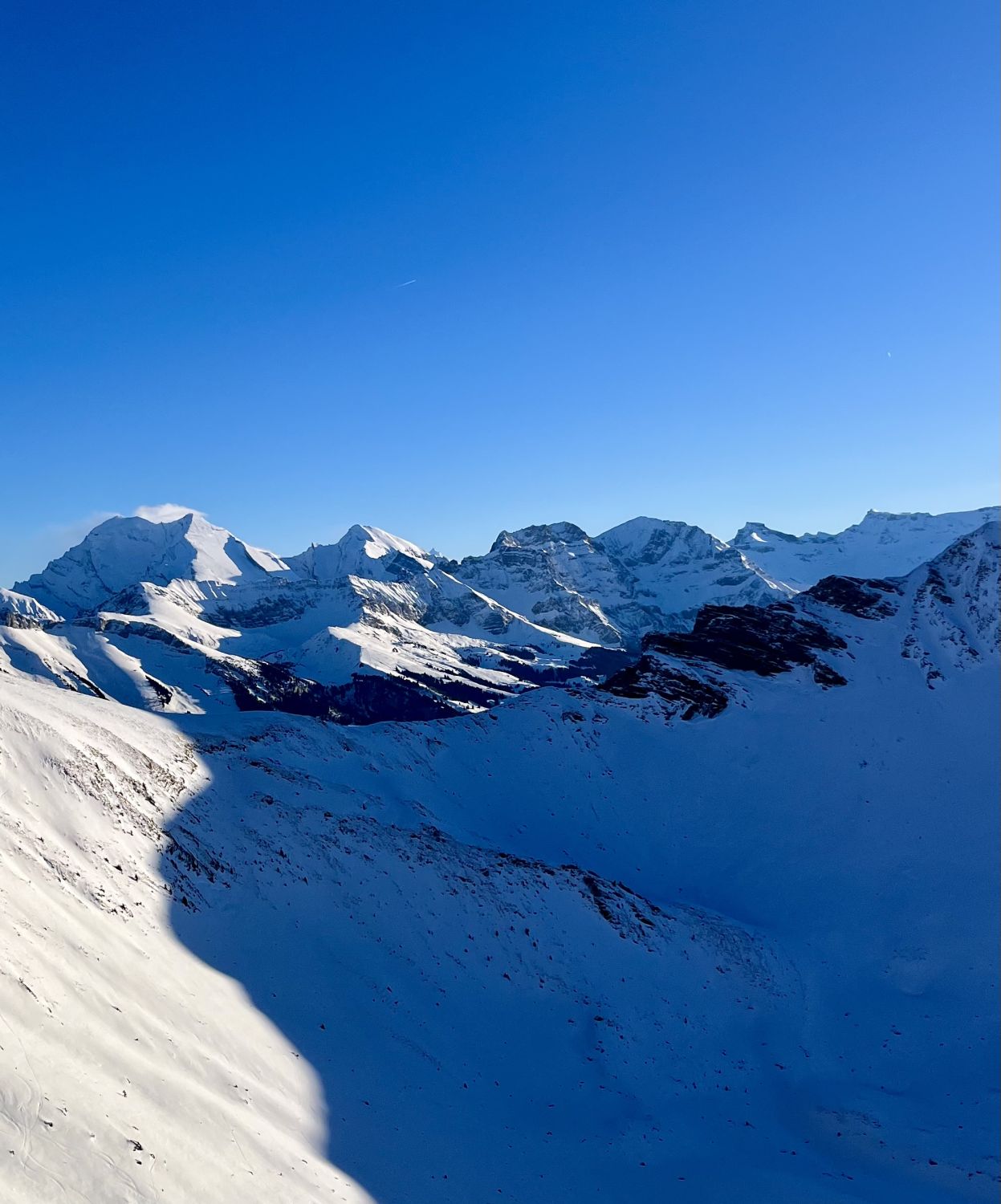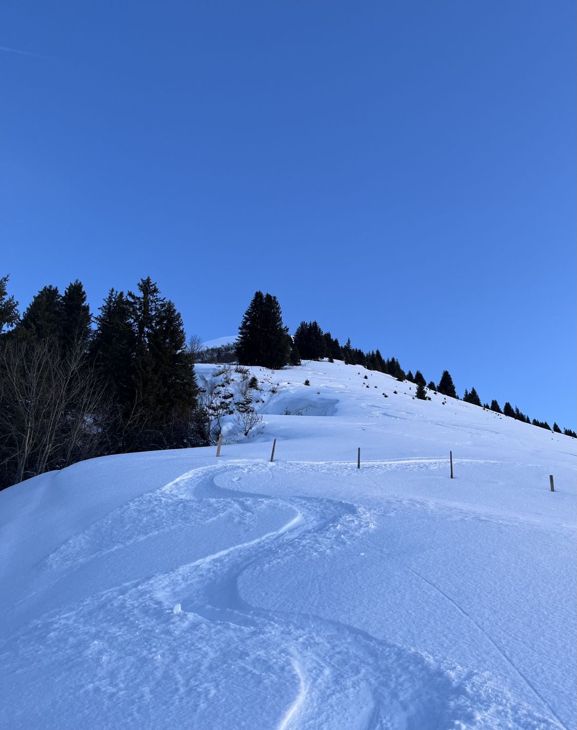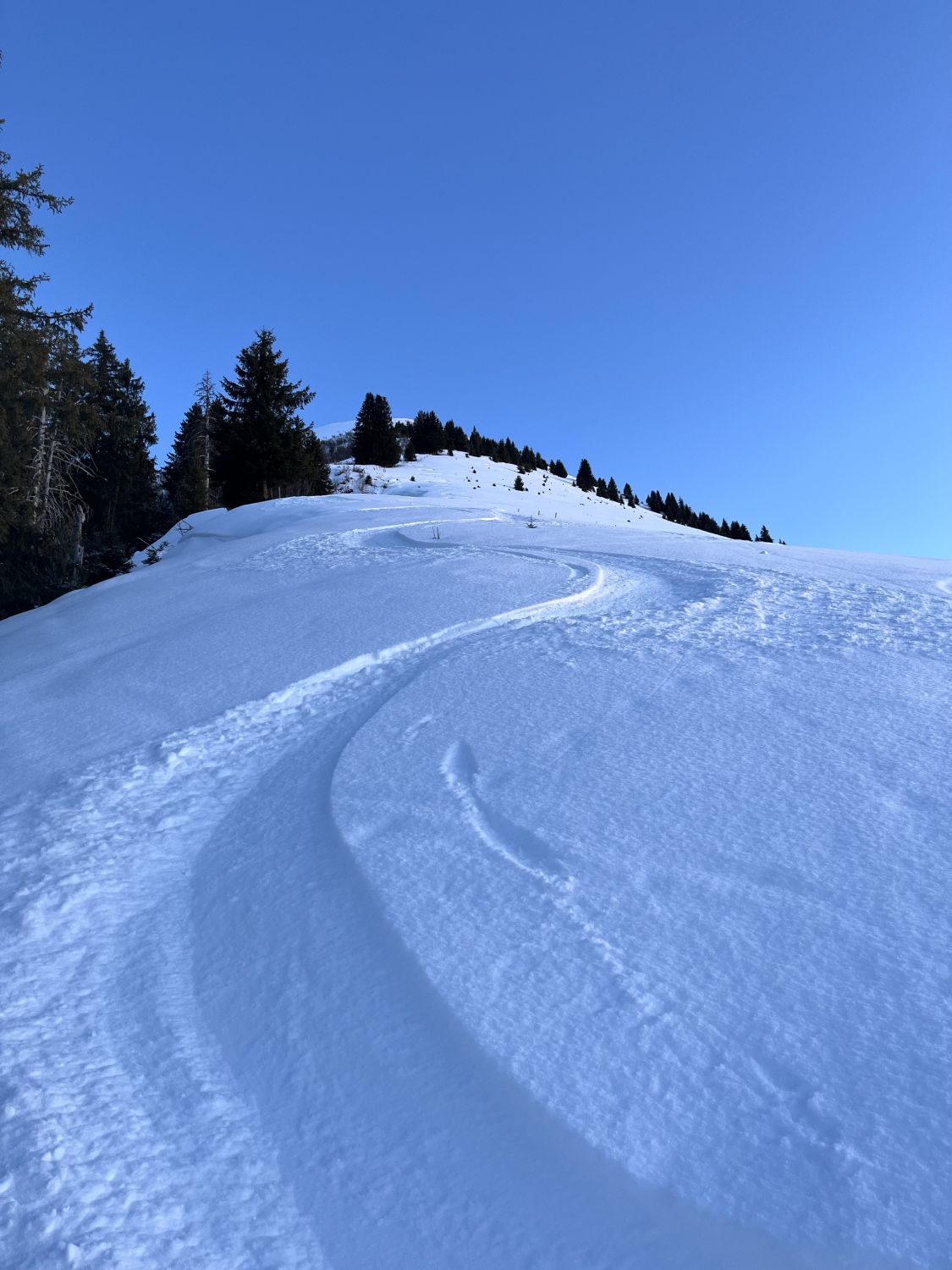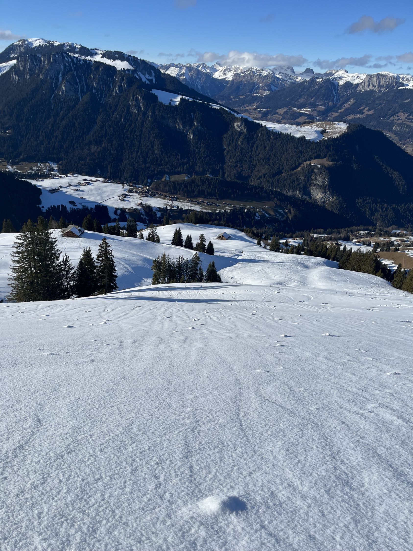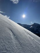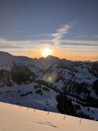 Noch schnell ein Nachmittag Türli gemacht. Erst um 14.30 Uhr auf Sprigenboden gestartet. Sonnige Hänge kein Gedränge. War ganz alleine unterwegs, Beim Start ein Pulverschümli von 5 - 10 cm. Weiter oben 15 - 25 cm. Das letzte Stück zum Gipfel hat kaum Schnee, geht aber gut zu Fuss. Fast Windstill und warm. Traumhaft schöne Abendstimmung. Abfahren war bombastisch, bei schönstem Pulverschnee. Im steilen Coulvar war der lockere Pulverschnee noch nicht gefestigt, deshalb gab es einen kleinen Rutscher, aber nicht gefährlich. Besser neben dem Coulvar fahren. Für mich war es in dieser Saison beinahe der schönste Pulverschnee. Es hat sich gelohnt.
