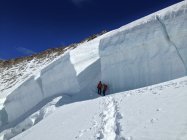Ab Silbersattel hat es auf dem Monterosagletscher sehr viel Schnee. Interessante Spur durch grosse Längsspalte.