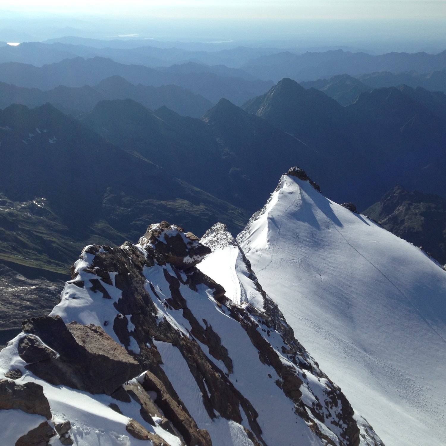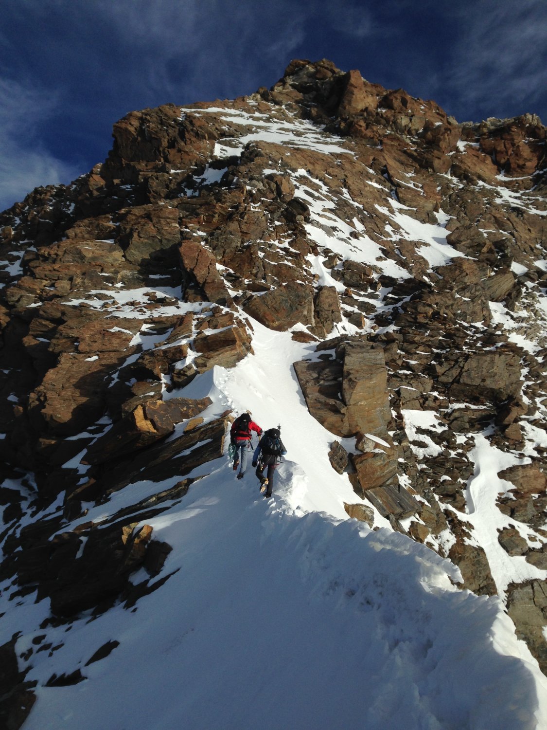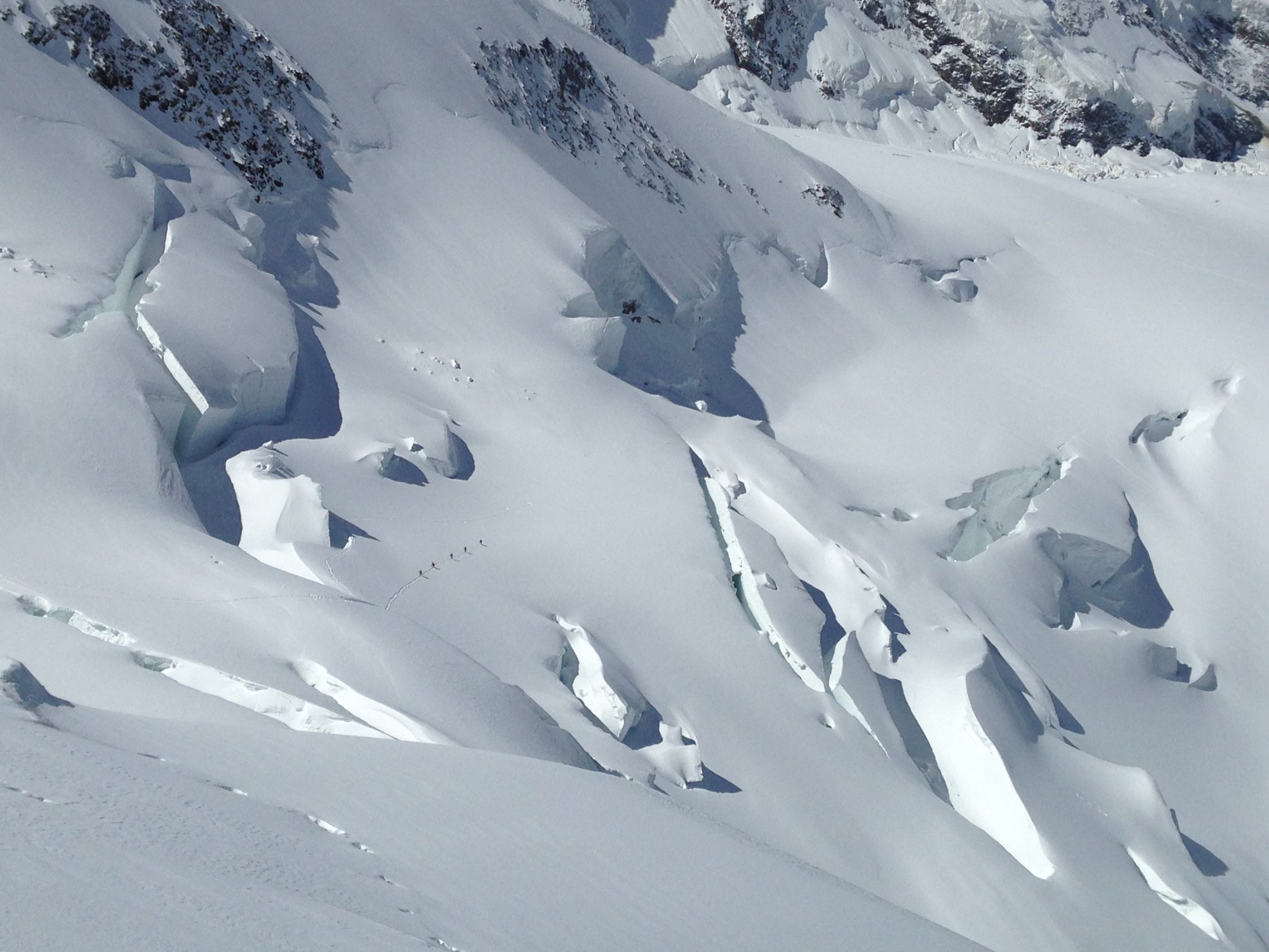 Zumsteinspitze – Dufour alles mit Steigeisen gegangen. Gestern sind vier Seilschaften zur Dufour traversiert.