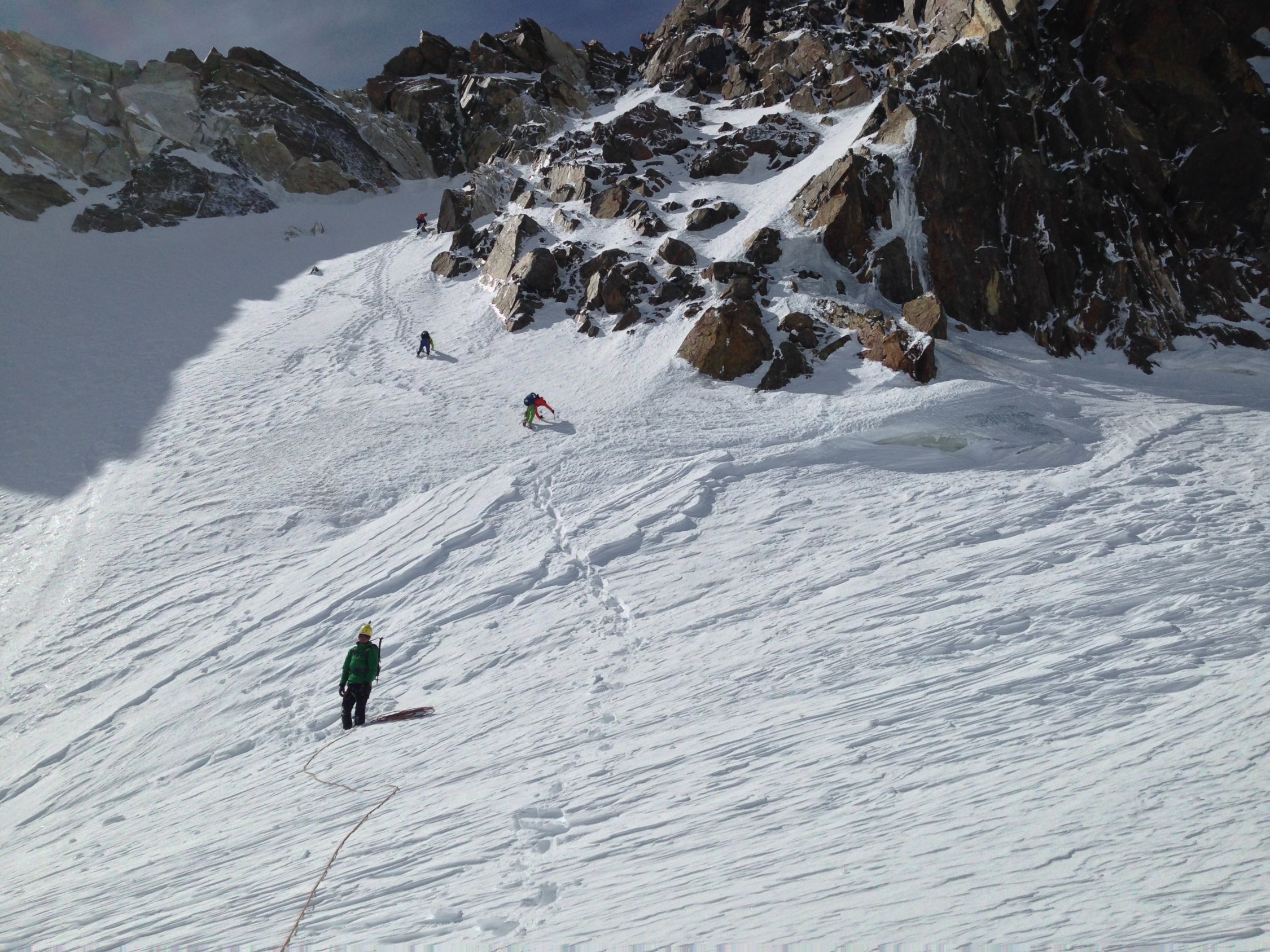 Der Abstieg in den Silbersattel muss nach dem Ausbruch der Abseilstellen, nun wohl wieder im Couloir zwischen Grenz- und Ostgipfel gemacht werden.