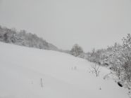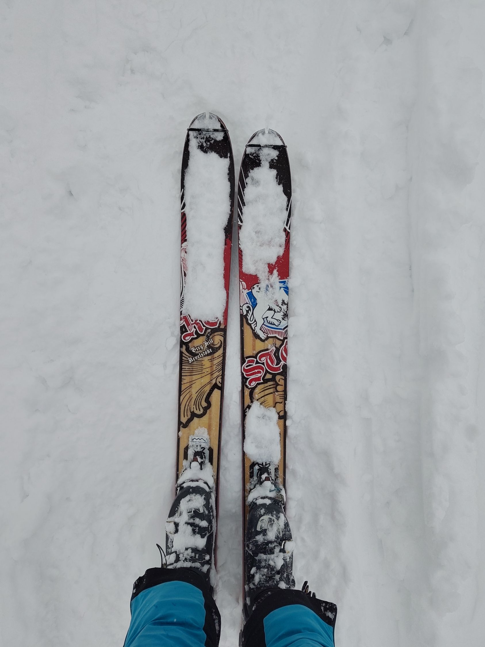 Ca. 30 cm etwas pappiger Schnee ab Parkplatz. Praktisch keine Grundberührung.