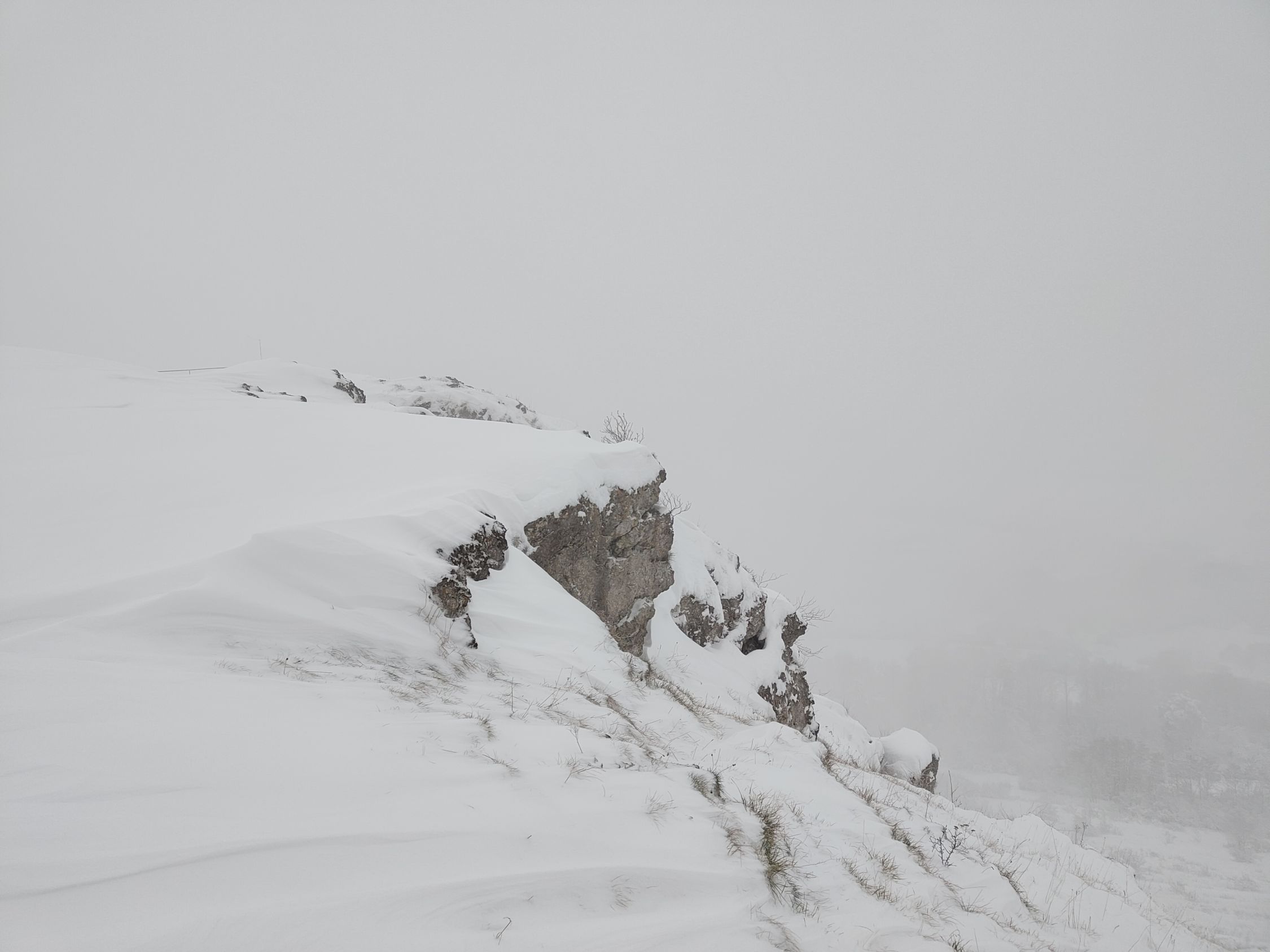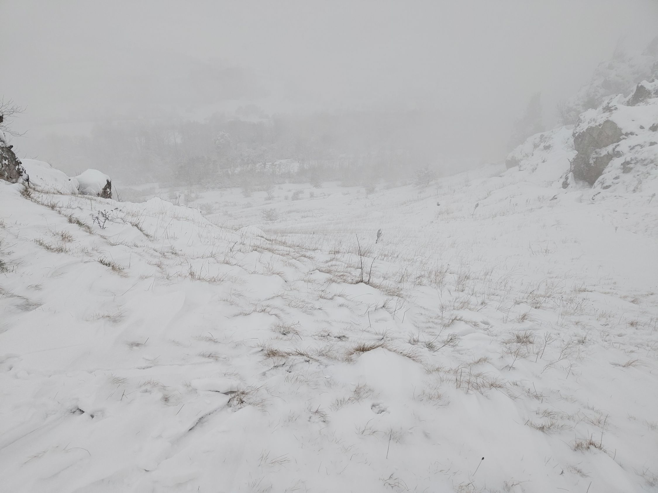 Der schöne Nordwesthang zwischen den Felsen war leider komplett ausgeblasen.