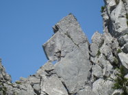 Der Fels kann , bis auf wenige Ausnahmen, als fest bezeichnet werden. Der geübte Berggänger tut jedoch gut daran, Griffe und Tritte vor Gebrauch etwas auf ihre Daseinsberechtigung zu "testen".