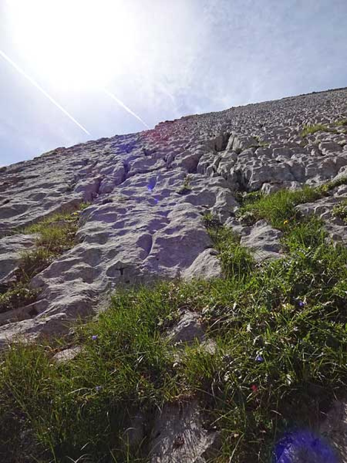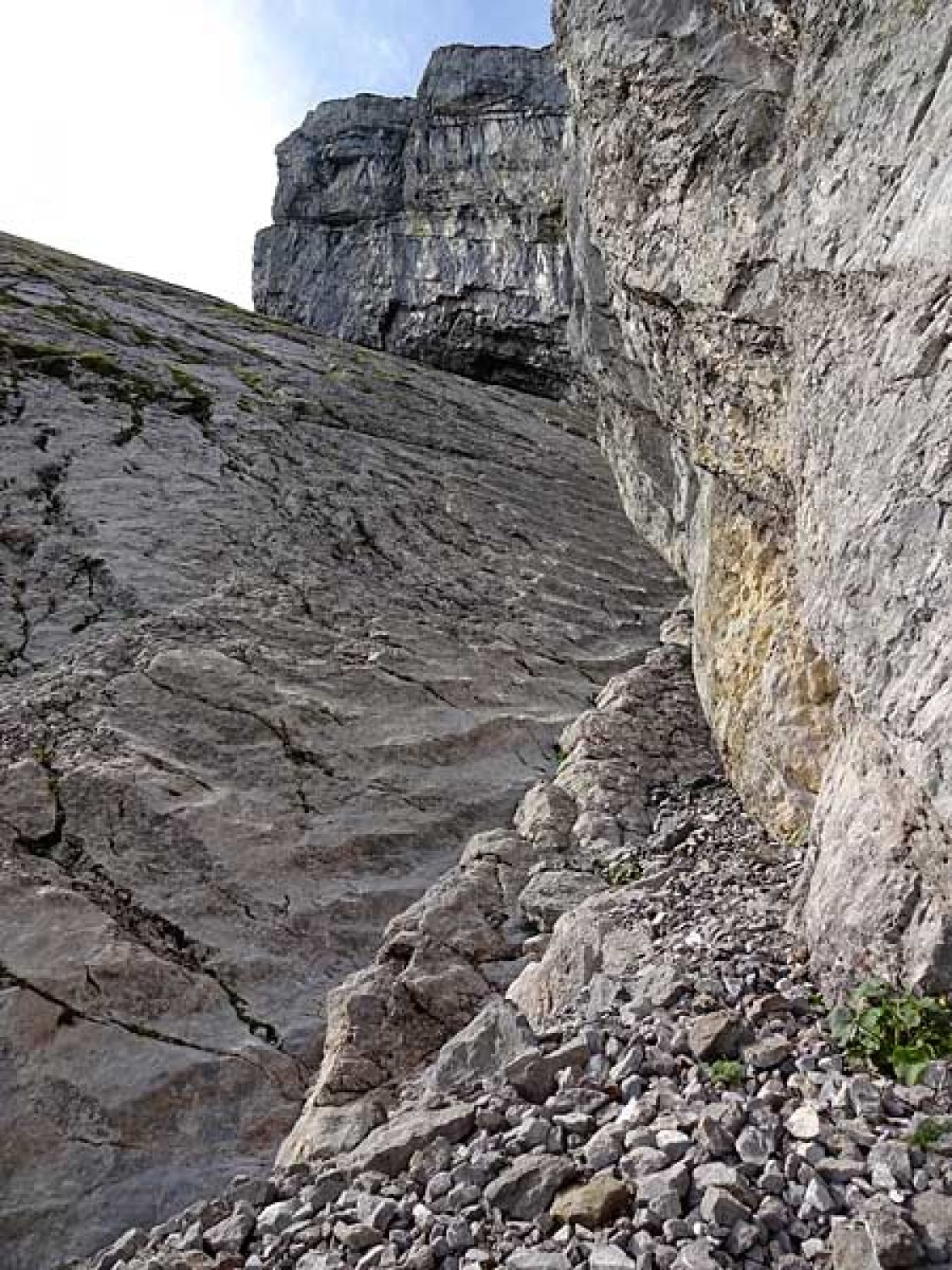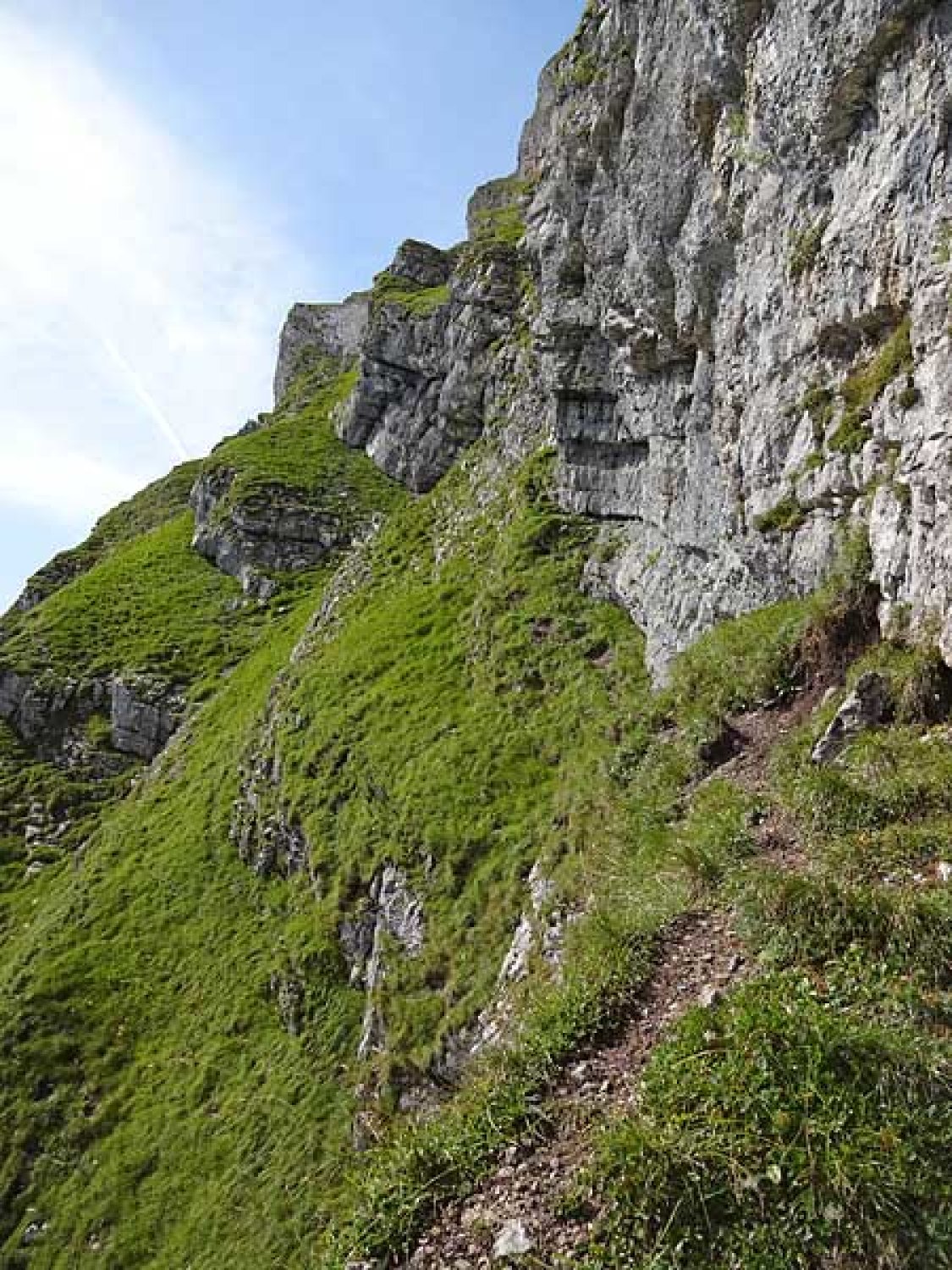 felsen sind trocken, die steilen schrofen vom vielen regen der vergangenen tage noch etwas feucht, aber insgesamt sicher zu begehen.