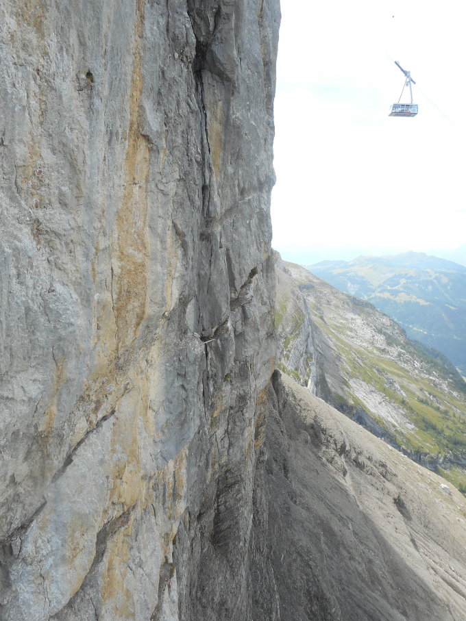 Die leicht ueberhängenden Stellen erfordern viel Armkraft. Der Klettersteig ist aber bestens mit Eisen abgesichert. An dieser Stelle ein Danke an die Waaddtländer Bergführer zur Einrichtung des Klettersteigs. C`est fantastique!