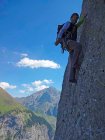 der untere teil der kletterei war praktisch durchgehend nass, was aber nur in der ersten, schmiereigen seillänge stark störte. auch oben war doch noch einiges angefeuchtet. besser steigt man also nach einer längeren trockenperiode ein (das wasser drückt aus den rissen in den felsen).