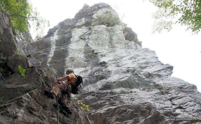 Schlattfelsen (670m): Klettersteig "Indianer"