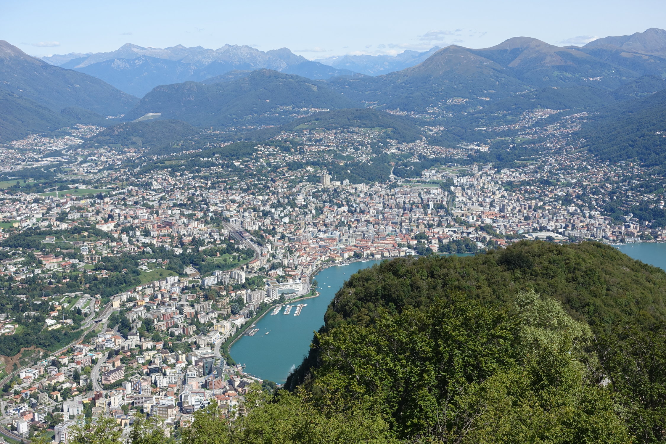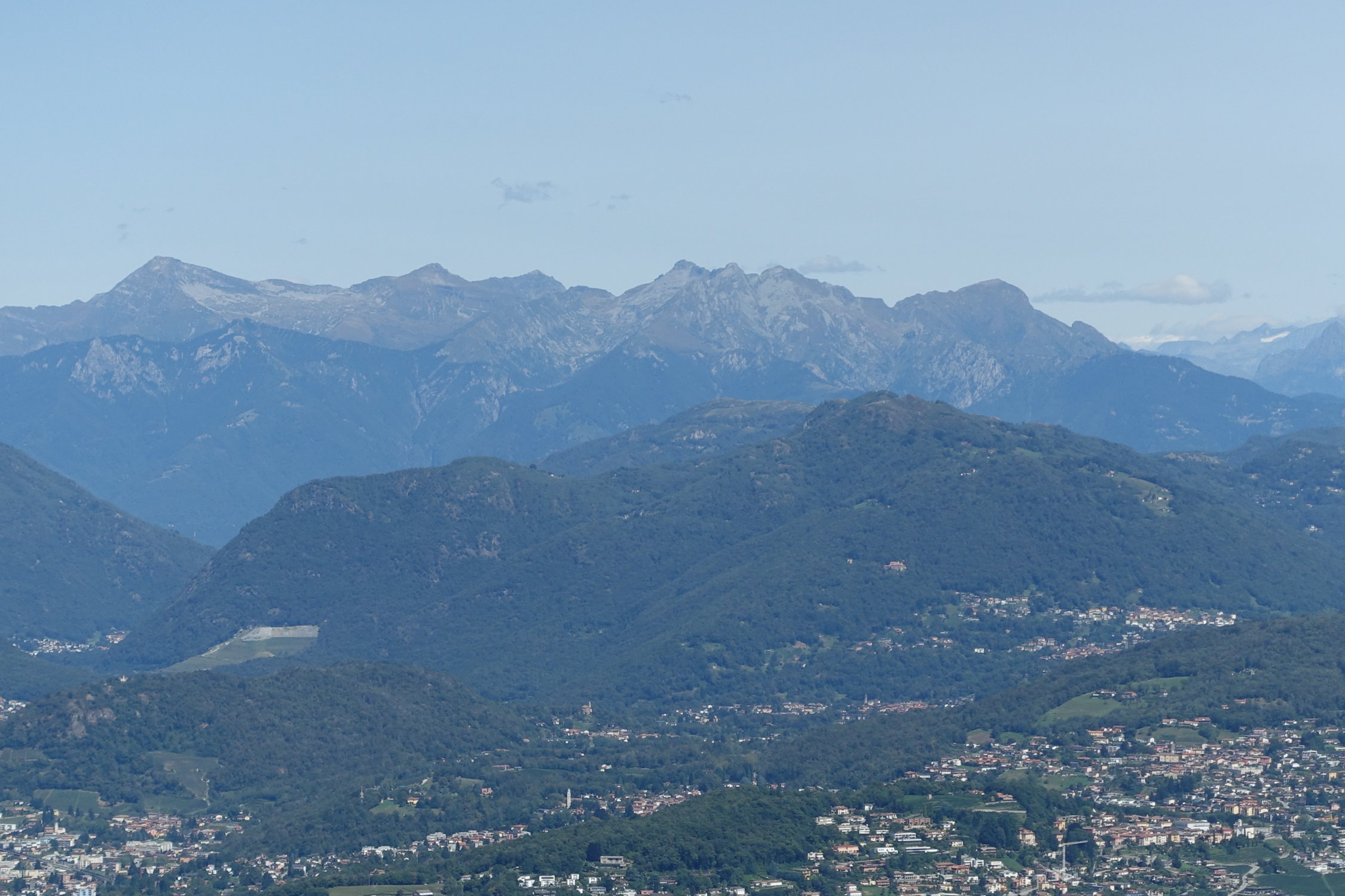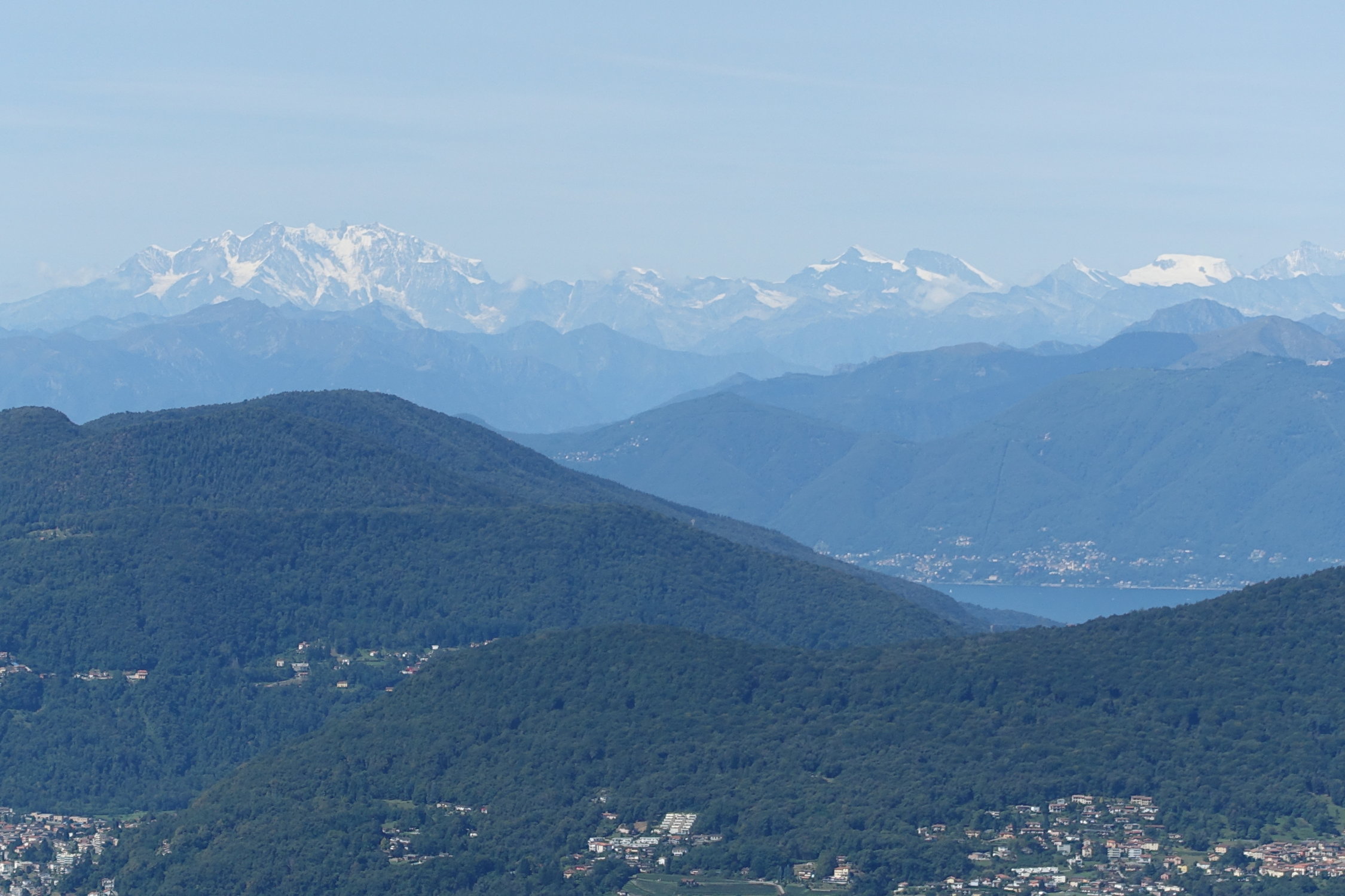 Schöner Blick auf Monte Rosa Südwand und auf Lugano vom Gipfel.