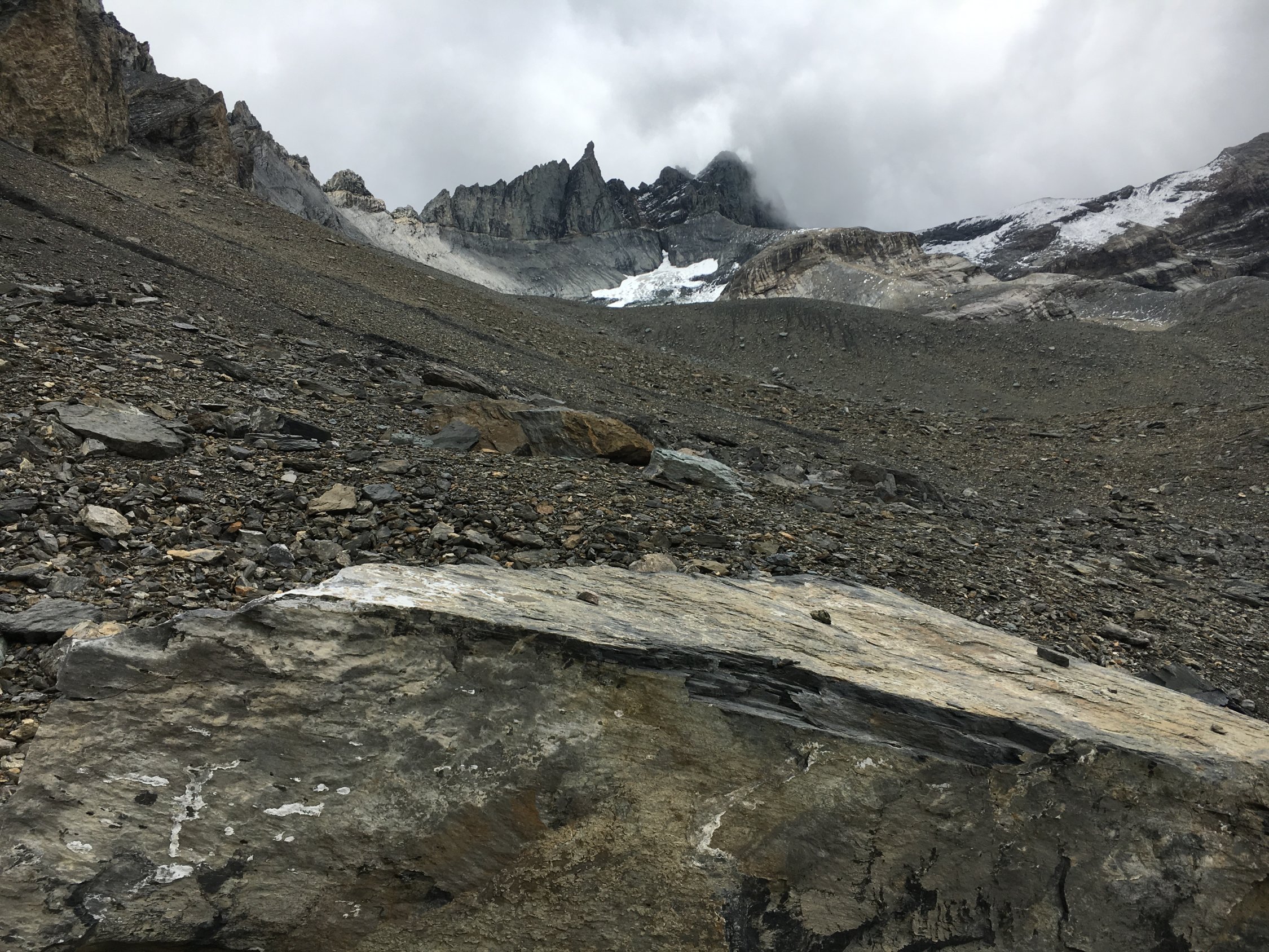 Danach gigen wir auf dem Nordwestgrat hinunter und über Geröllfelder zum Tscheppband, ein gut sichtbares Felsband entlang der Glarner Hauptverschiebung und auf dem Band bis zum Tschepp und über Sandböden wieder zurück zur Ringelspitzhütte.