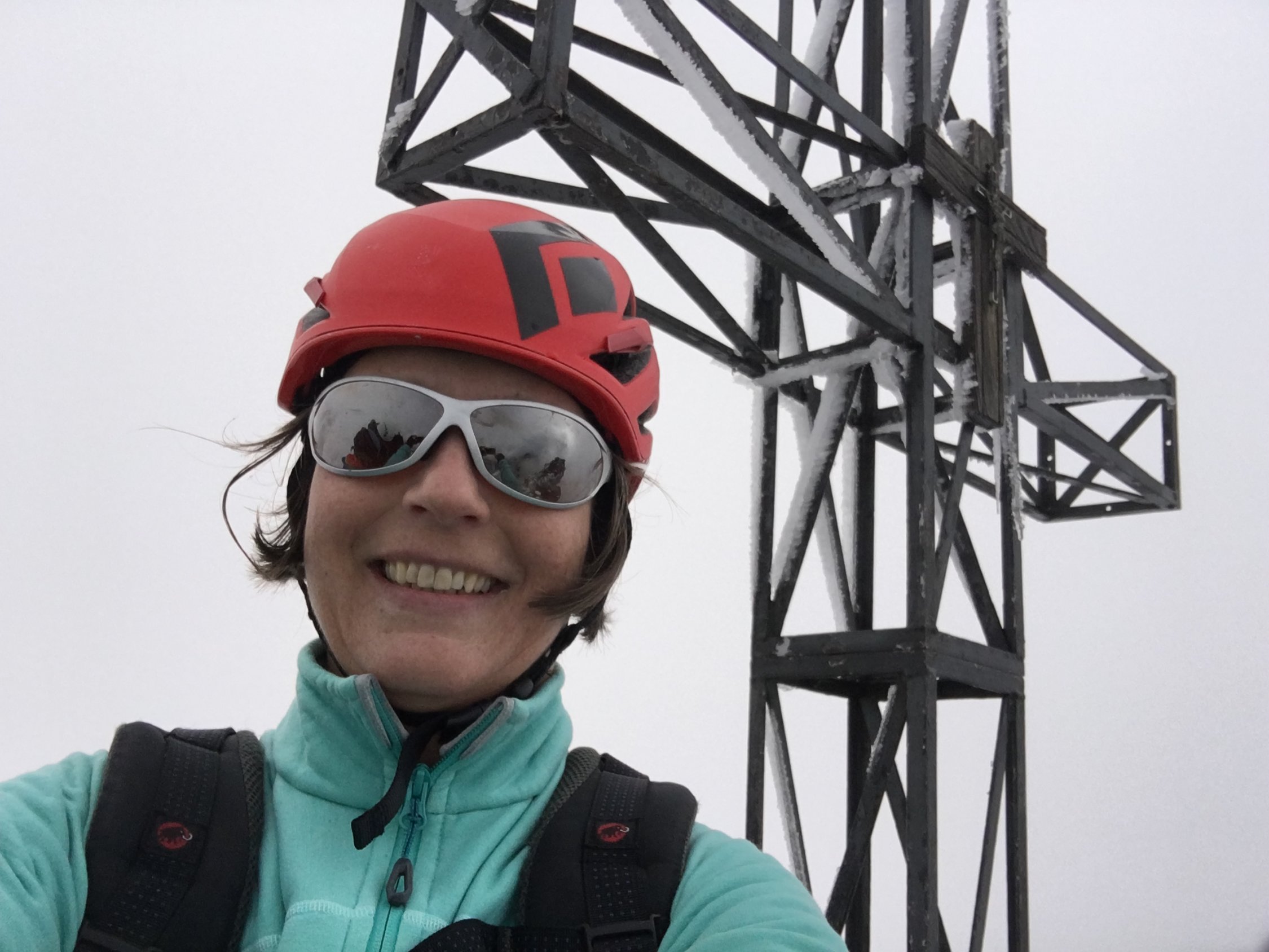 Der Weg zum Gipfel führte die letzten Meter senkrecht nach oben, ist aber mit (vereisten) Fixseilen gesichert.