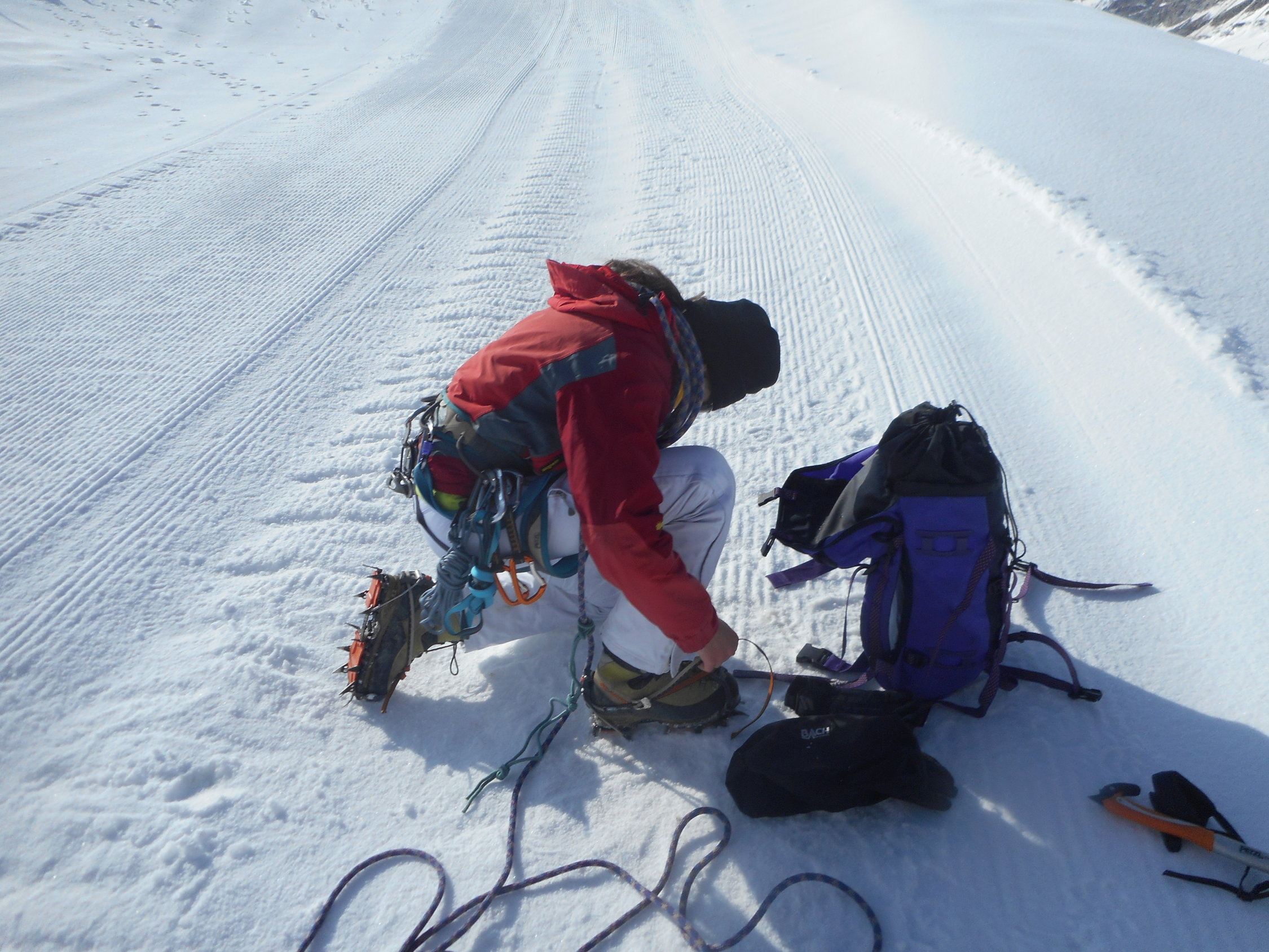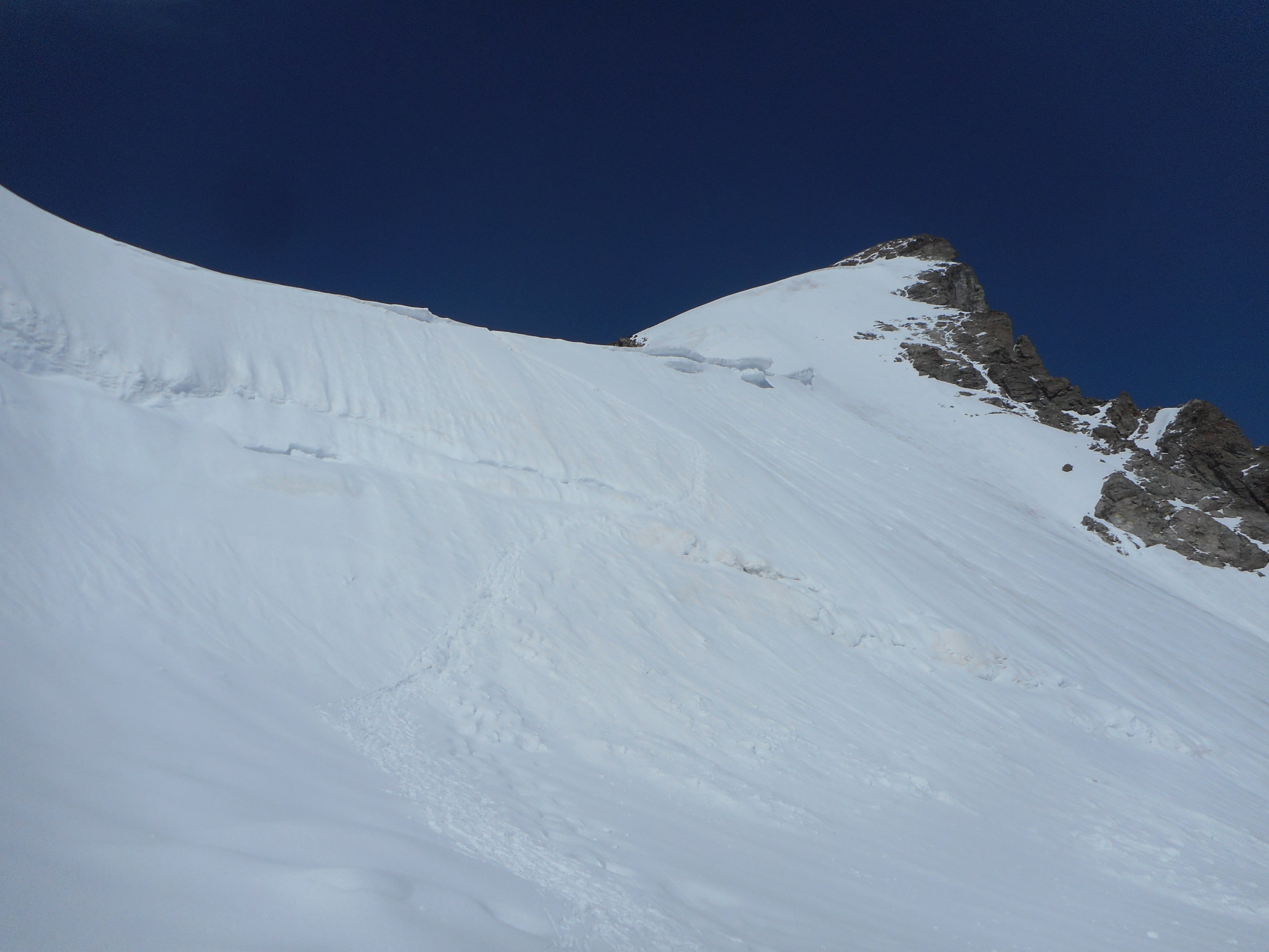 Auf- und Abstieg: Bester Firn- und Trittschnee. Die Bergschründe zum Rotallsporn, und unter dem Rottalsattel sind gut zu ueberqueren. Wir bestiegen diesen Berg als Tagestour ab Bern.