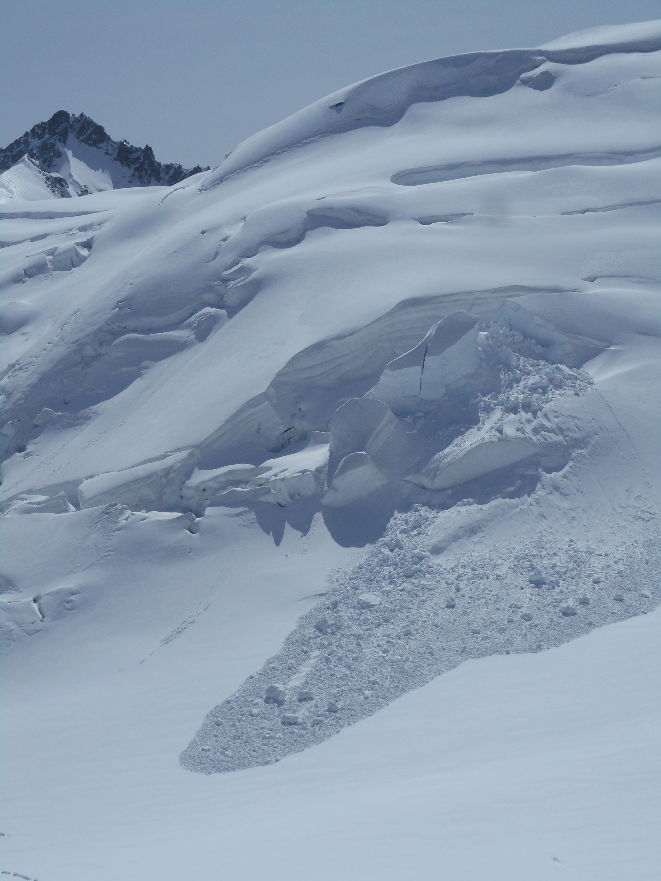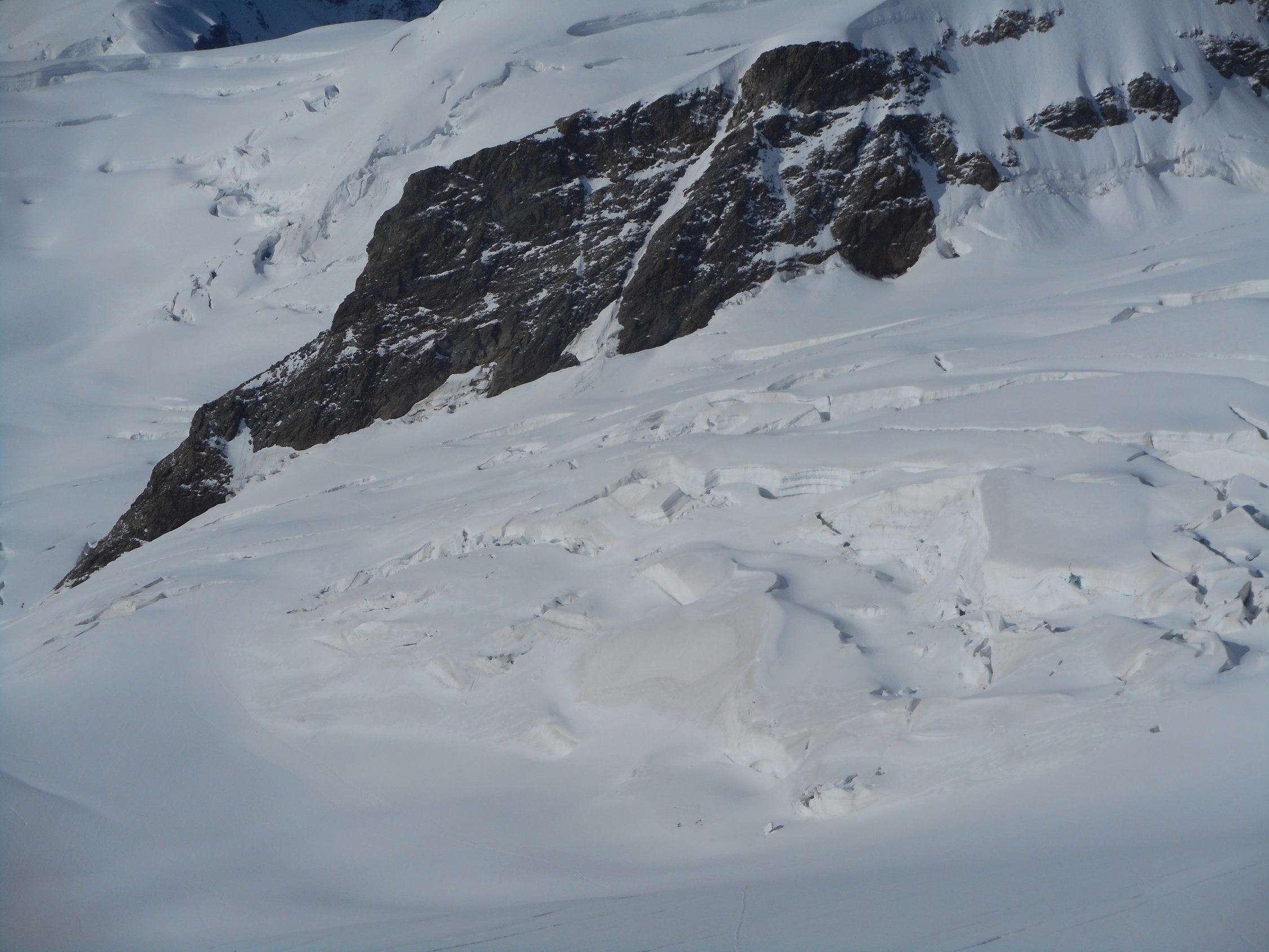 Unter dem Louwihorn ist ein grosser Gletscherturm zusammen gestürzt. Siehe Foto.
