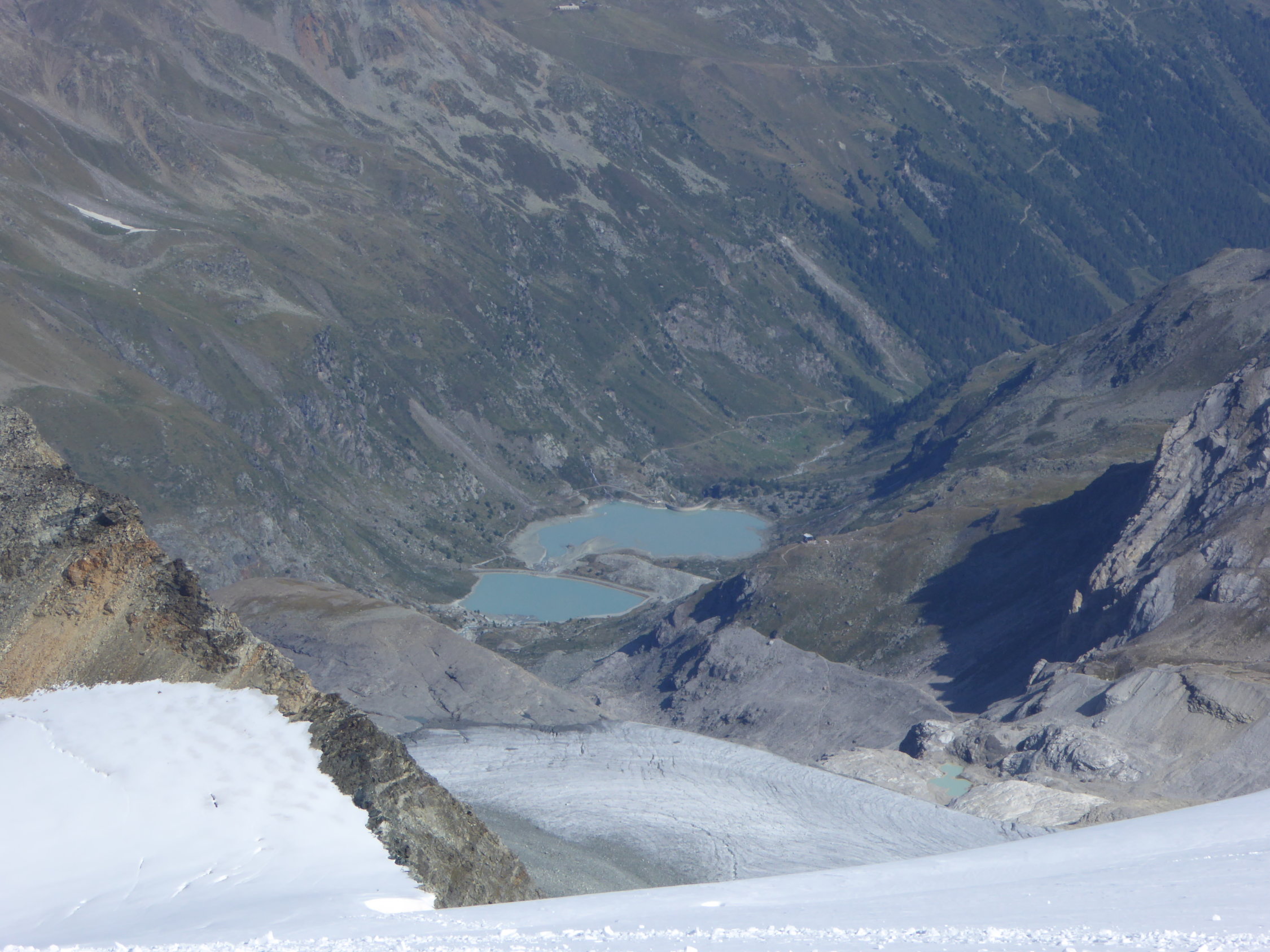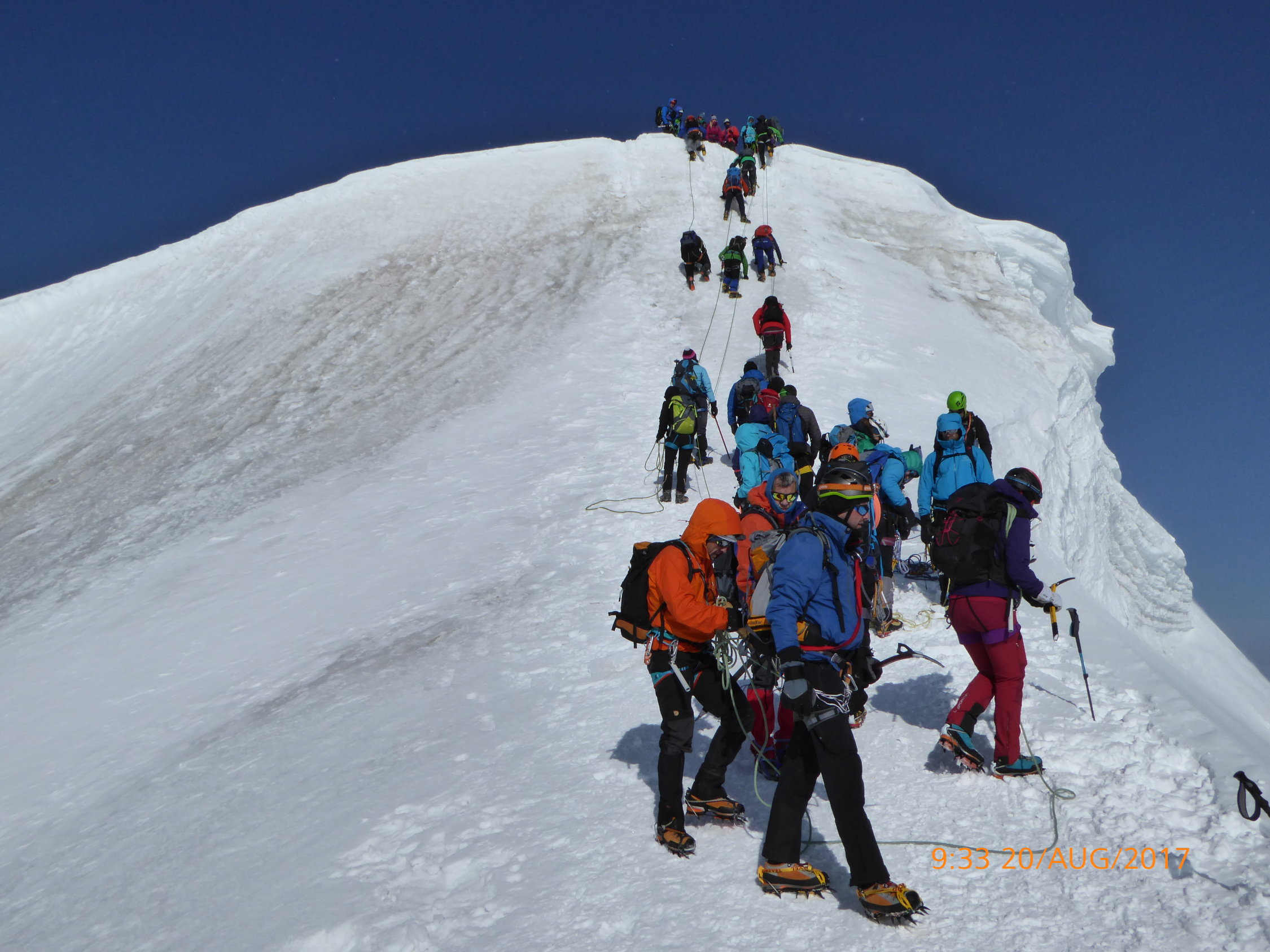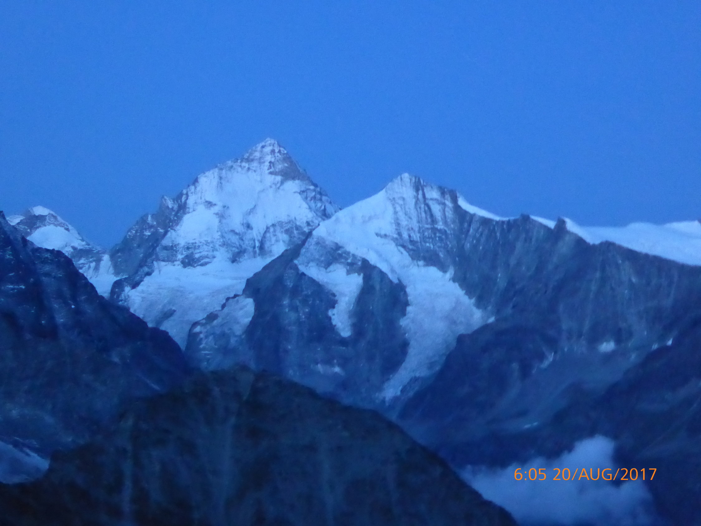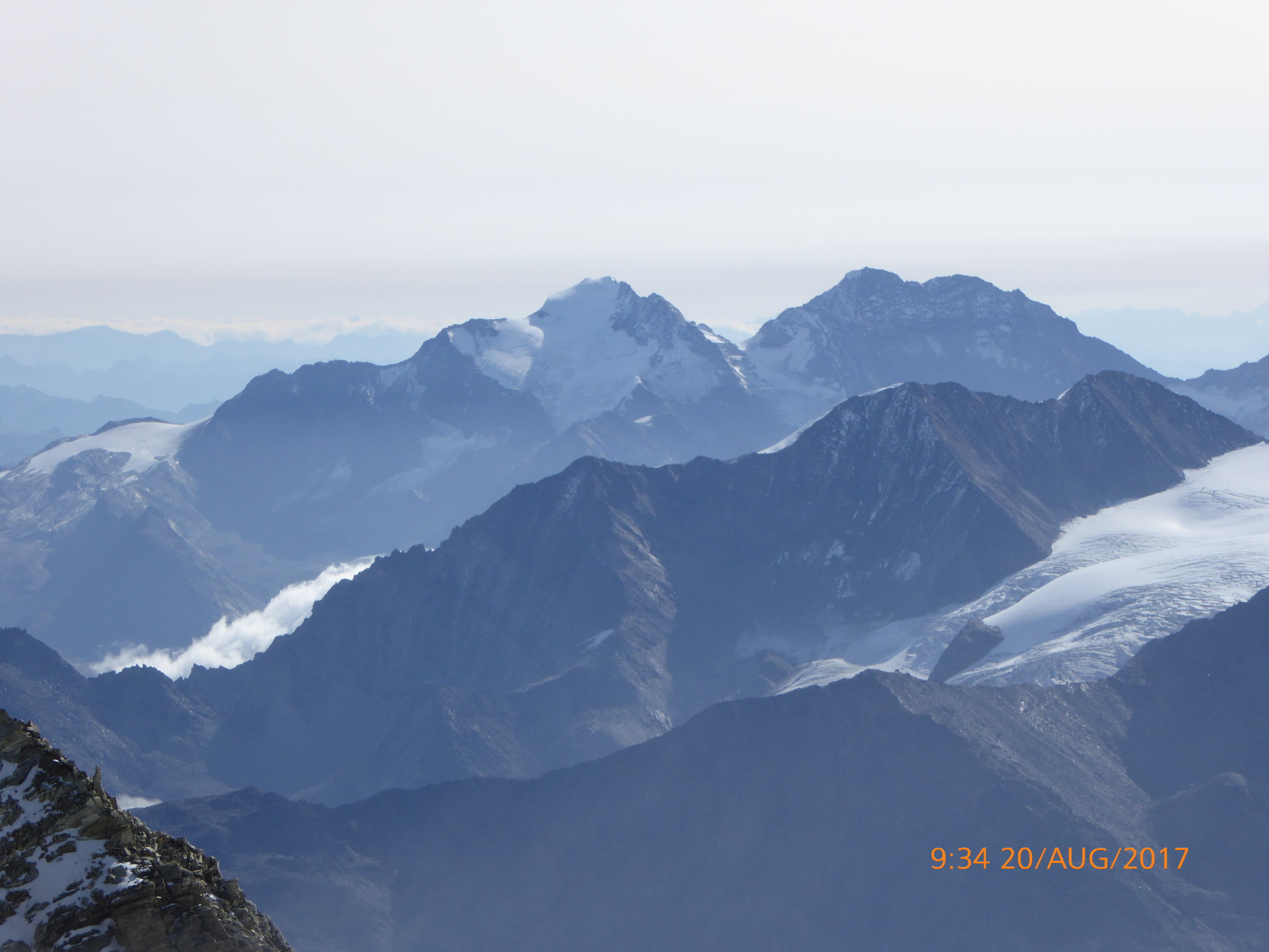 Das Bishorn ist ein Pracht-Aussichtsgipfel, leider auch ein Probiergipfel für viele Neueinsteiger. Viele Überholmanöver in den flachen Passagen, zu früher Wiedereintritt in die Spur mit Behinderung, oben am steileren Hang hängen diese Spezialisten und blockieren den Weg durch mangelnde Trittsicherheit im Neuschnee. Riesige Seilschaften, 10 Leute am Seil, die die Spur auf ganzer Länge blockieren. Tracuit-Hütte gute Bewartung, aber es fehlt an den nötigen Einrichtungen, auch sanitärer Art, um morgens zügig loszukommen. Am Besten startet man sehr bald nach dem Frühstück oder wie wir als vorletzte Seilschaft, um aus dem Pulk herauszukommen. Beim Schlussaufschwung auf die Eiskappe des Bishorn heisst es anstehen. Spannende abenteuerliche Seilmanöver (sichern aus der Hand direkt an der Kante) und Flüche. Schön, dass es an dieser Stelle eine phantastische Aussicht auf das Weisshorn und die Monte Rosa, sowie Dom und Täschhorn hat. Auf dem Gipfel ein sagenhafter Blick Richtung Dent Blanche und Mont Blanc.