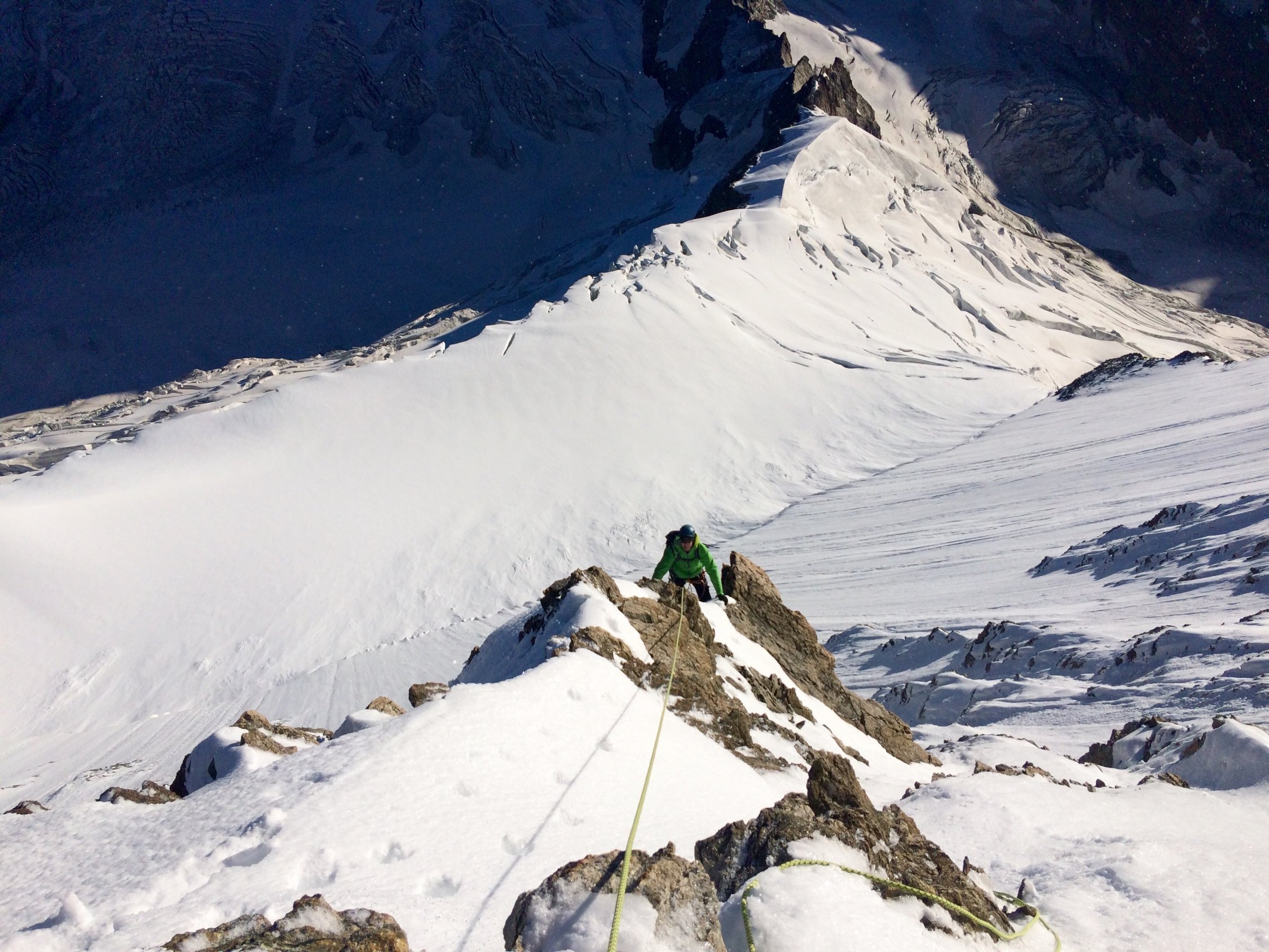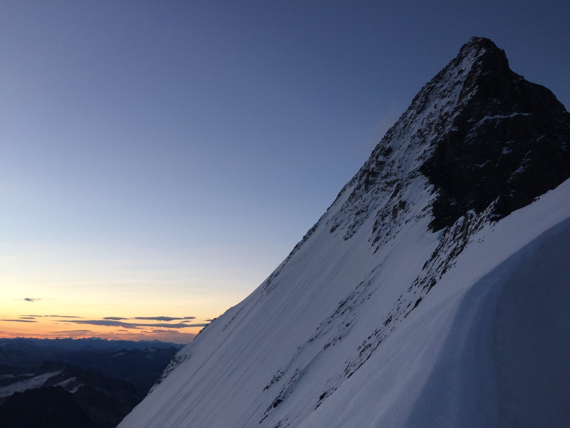 Im Schreckcouloir wenig bis kein Steinschlag, viel Wasser, Weg in totaler Dunkelheit nicht ganz einfach zu finden, Gletscher meist noch mit Firn bedeckt, sehr griffig, Couloir zum Nässijoch bis auf ca 10m mit gutem Firn, am Grat einige Firnpassagen, SW-Seite trocken, NO-Seite winterlich mit unbefestigtem Schnee, mit Steigeisen bis Gipfel, Abstieg über Normalroute komplet trocken, ohne Eisen, neue Abseilpiste rot markiert, sehr dem Steinschlag ausgesetzt, neuer Hüttenwart lustig. www.silviocasoni.ch