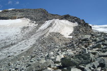 Der Firn beginnt an einigen Stellen eisig zu werden, möglicherweise wird dann die Umgehung des Gde. Gendarmes etwas heikler.