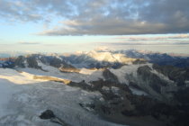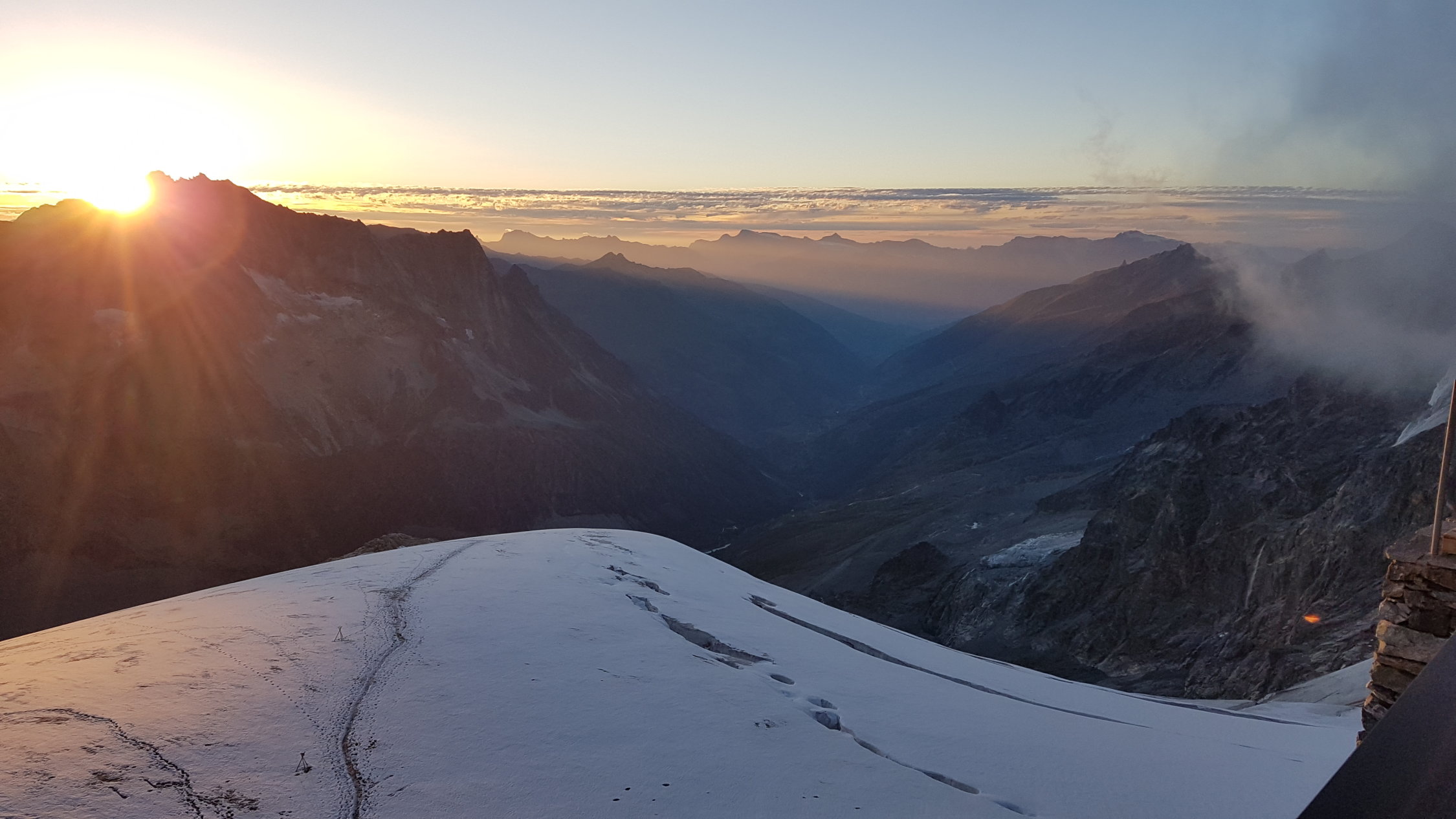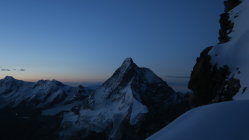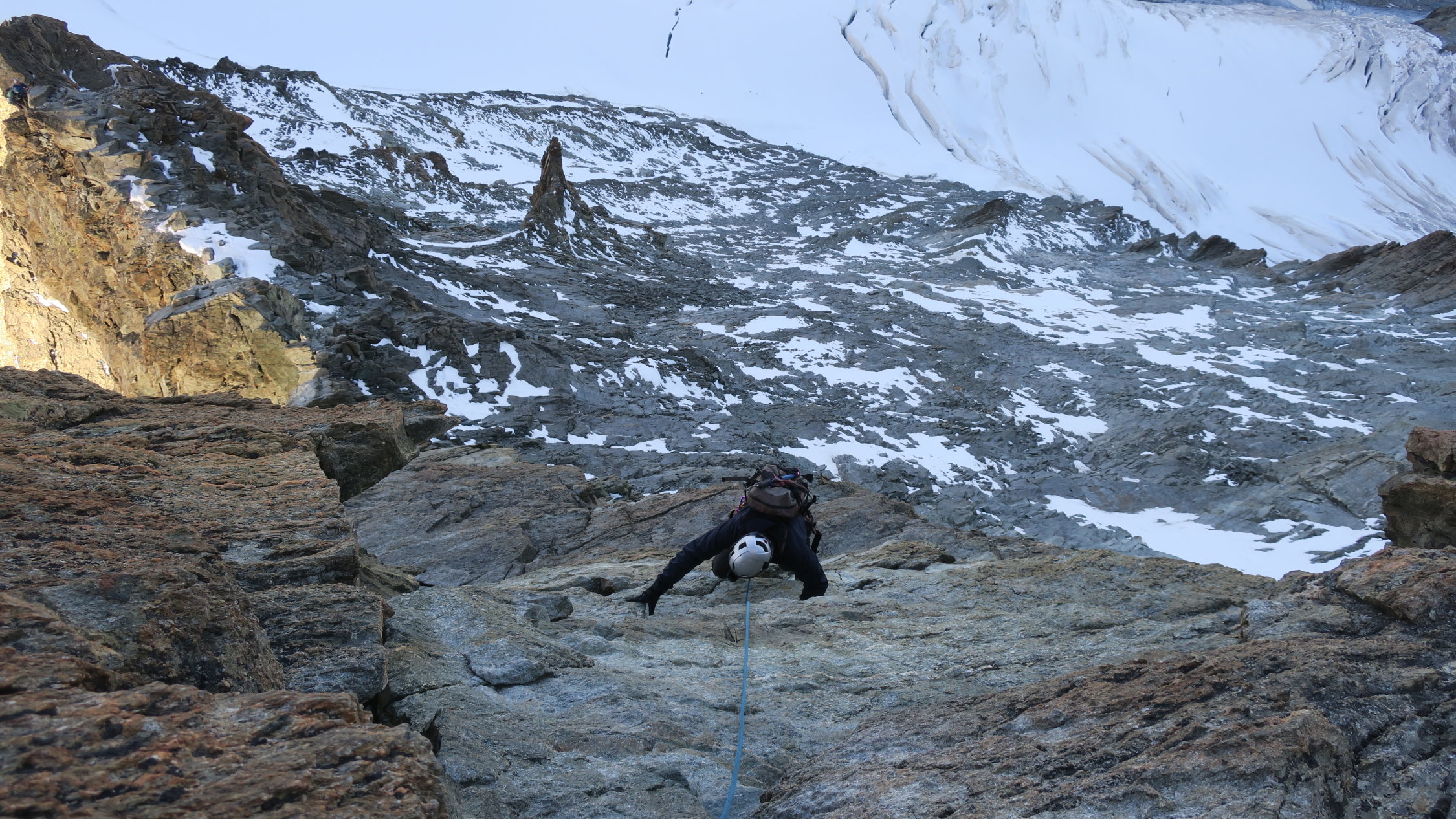 Start um 05h00 bei der Hütte und ab Ende Hütten-Grätli mit Steigeisen bis in die Lücke hinter dem Gde. Gendarme, welchen wir im Firn umgangen sind. 2 Partien haben diesen in trockenem Fels überklettert.