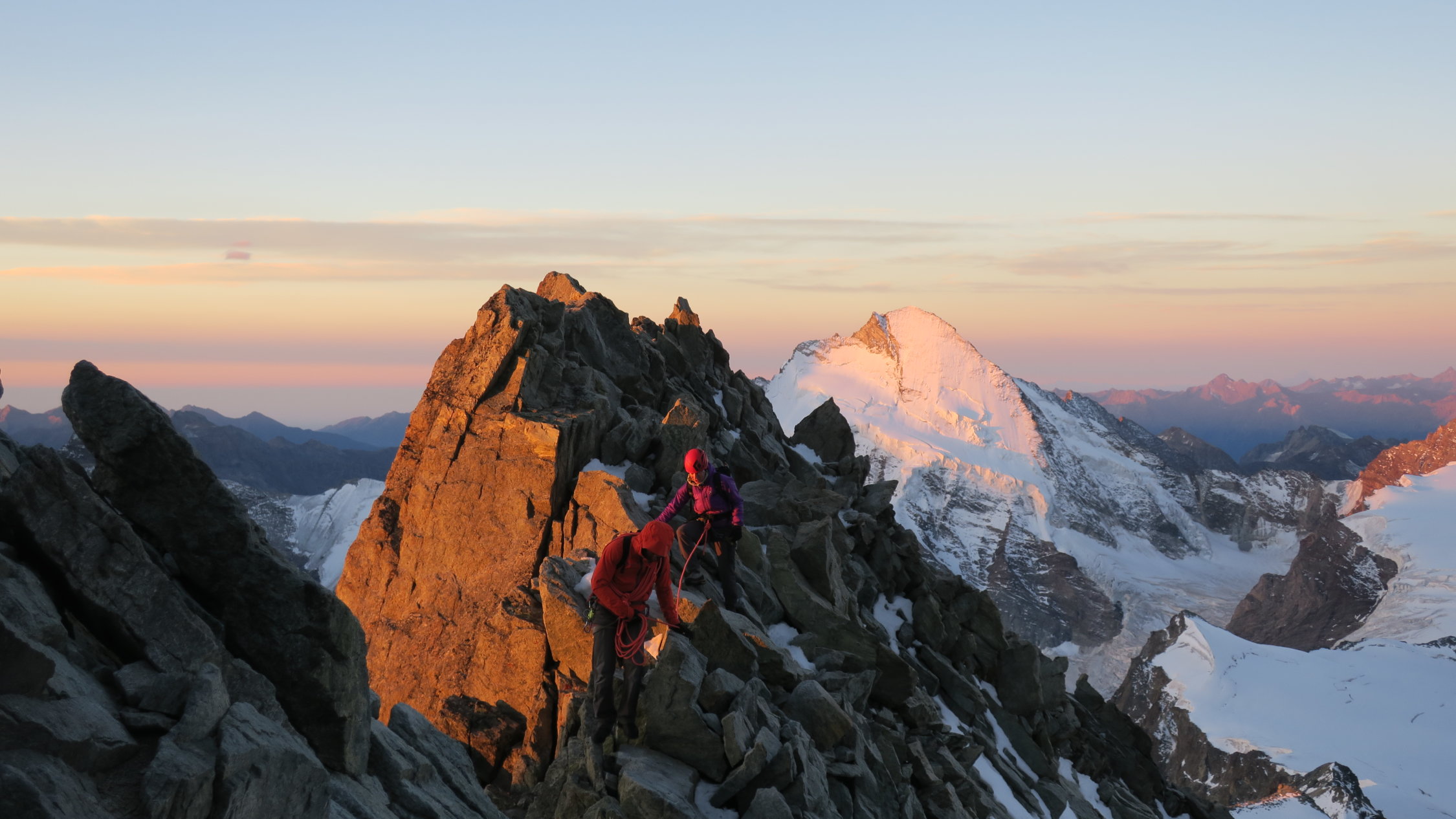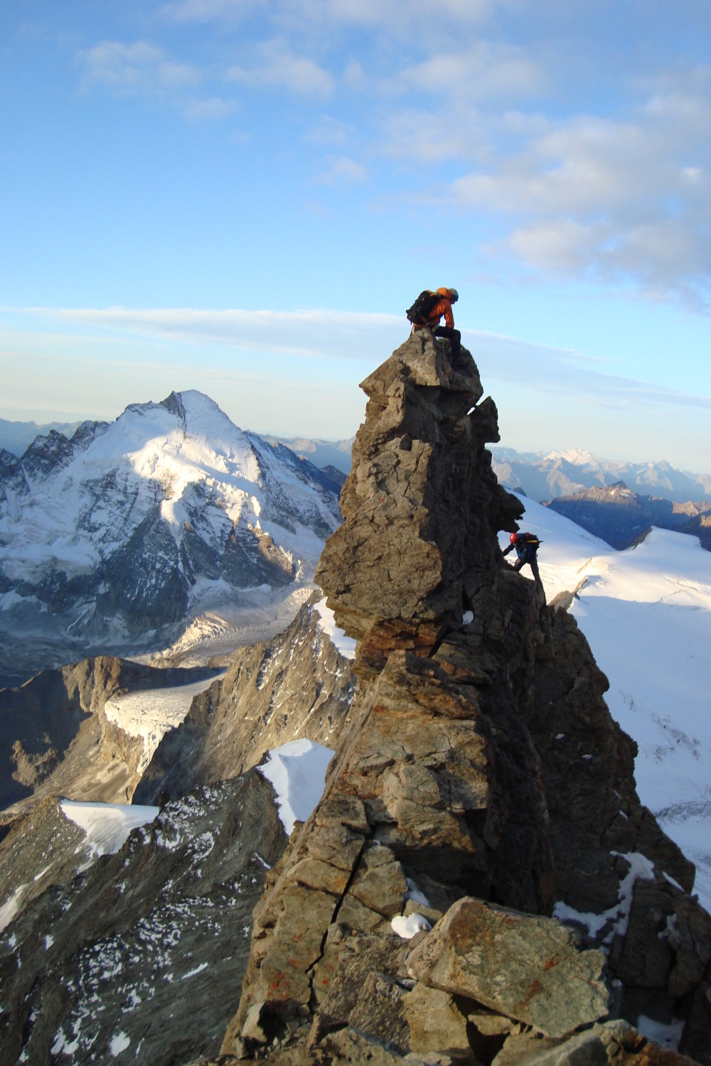 Danach ohne Steigeisen in trockenem Fels mit einigen wenigen Schneeflecken zum Gipfel, welchen die meisten bereits um rund 08h30 erreichten.