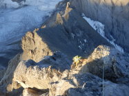 Beste Verhältnisse am Grat (Roti Zend rauf; Leiterngrat runter). Fels sehr brüchig. Oft sind heikle, ausgesetzte Bänder zu begehen, die schlecht absicherbar sind.