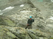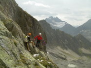 Wir waren allein in der Route. Nach dem Abseilen trafen wir noch ein Gruppe aus der Romandie am Einstieg, die aufgrund eines kurzen und wenig ergiebigen Schauers abgebrochen hatten. Es war aber auch nicht absehbar, ob und was da noch kommen könnte.