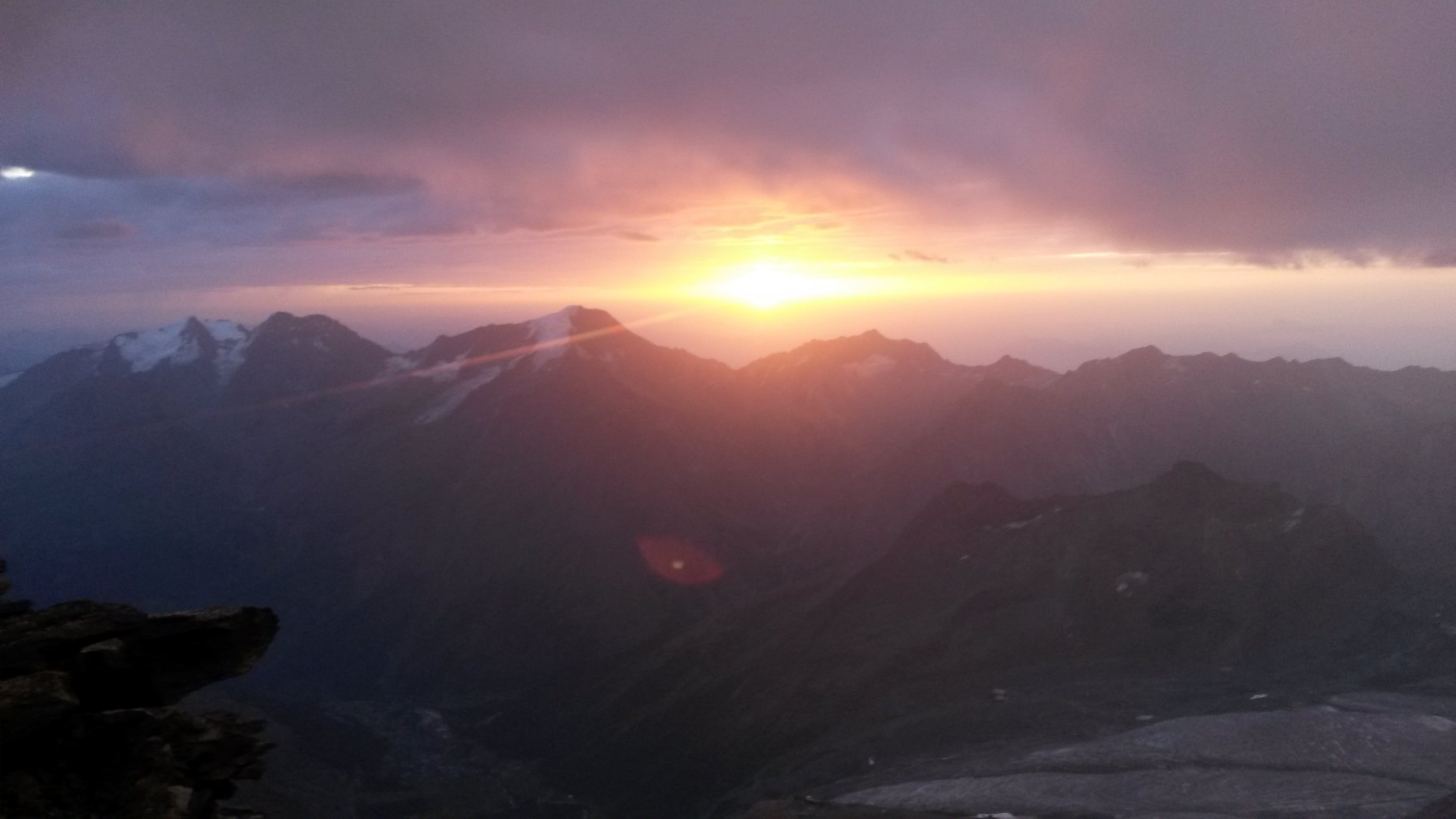 Kurz nach Sonnenaufgang einsetzender Schneefall. Der Weiterweg zum Dom war somit riskant, deshalb Abbruch.