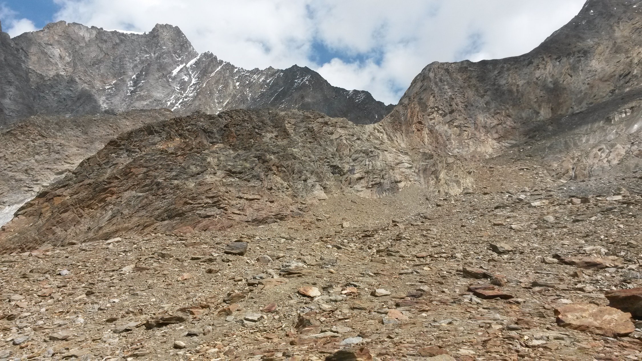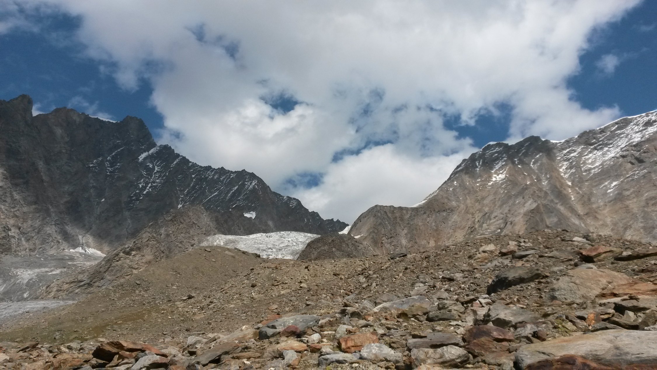 Nach kurzem Aufenhalt im Biwak und Beratung sind wir auf die Täschhütte abgestiegen. Der Abstieg vom Weingartengletscher ist in der Rinne recht knifflig.