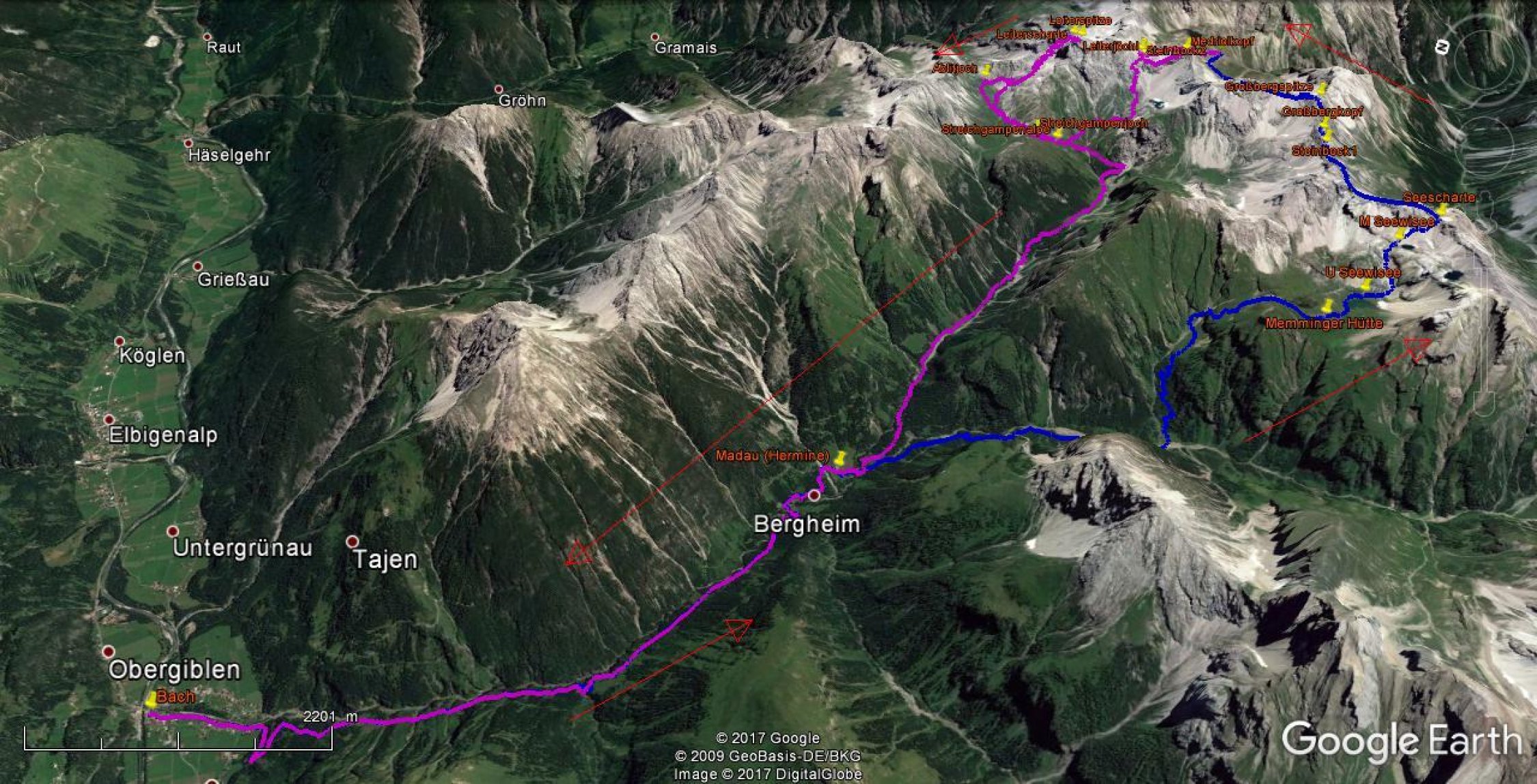 2 Tagesrunde ab Bach: Memminger Hütte - Seescharte - Württemberger Haus - Leiterspitze - Röttal - Bach