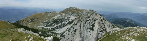 Tourenbeginn um 08:55 Uhr bei 24°C unter diesigen Verhältnissen. Im Aufstieg änderte sich dies, Nieselregen kam auf und auf dem Kamm blies heftiger Westwind bei nur noch 14°C. Vorboten der kommenden Kaltfront. Gegen Mittag kam dann allerdings noch einmal die Sonne hervor und im Vallone Osanna wurden es noch mal wieder 24°C.
