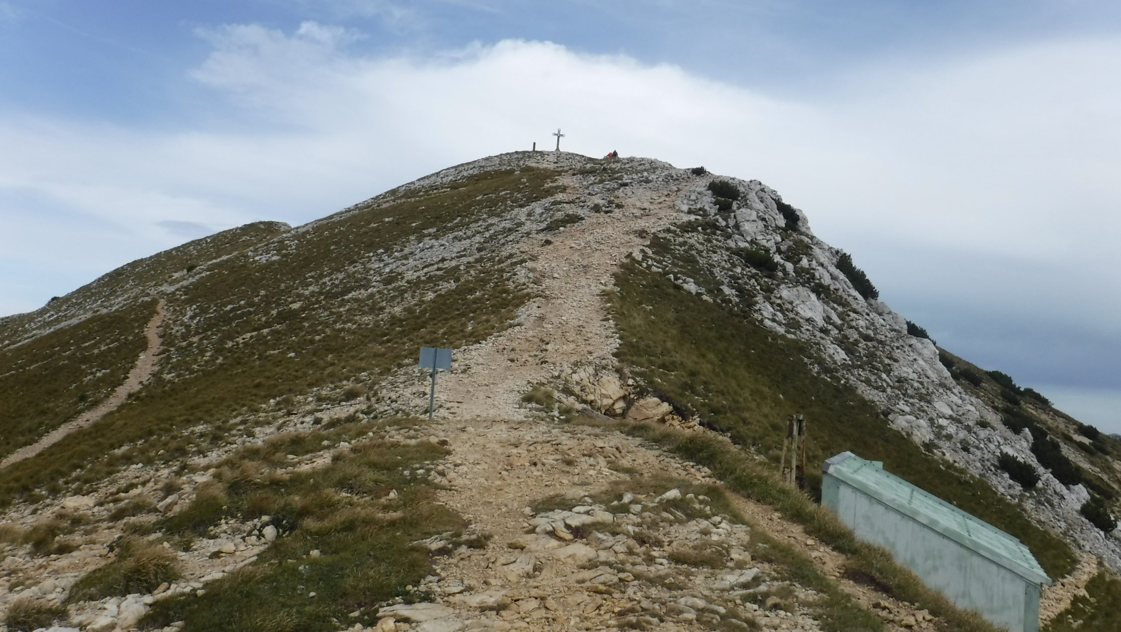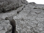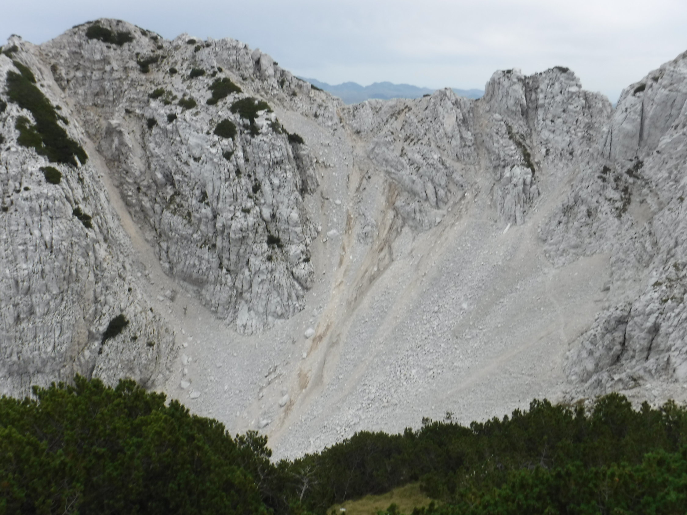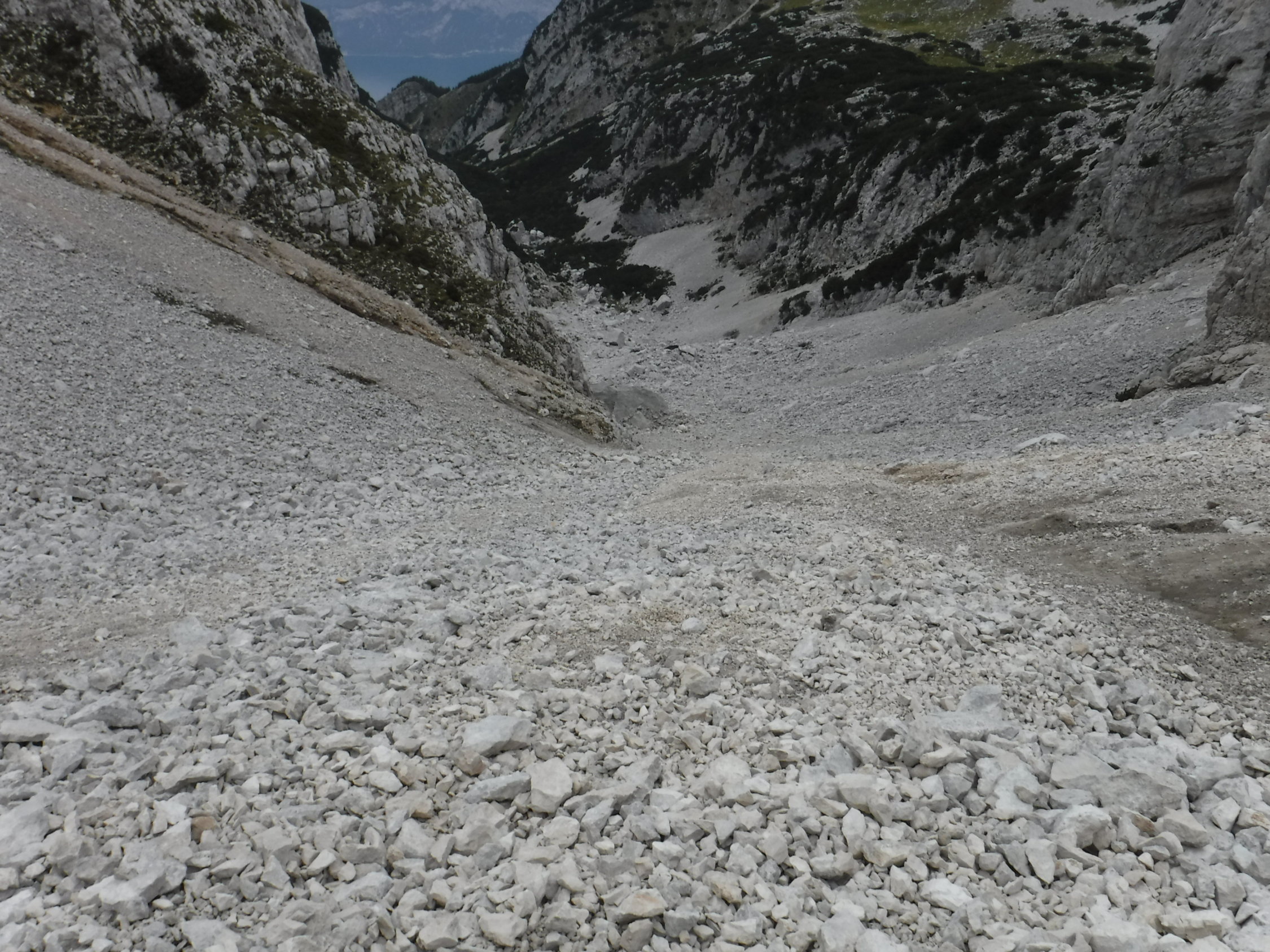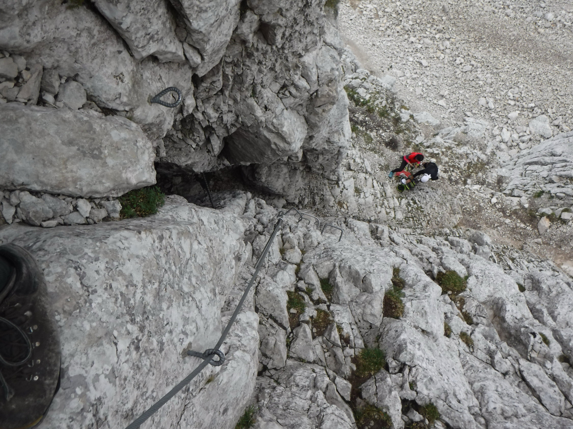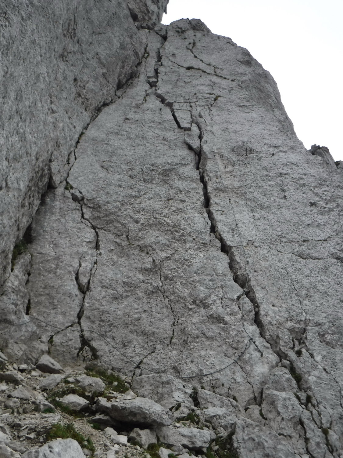 Am Einstieg kam kurz nach mir ein italienisches KS-Pärchen an, die westseitig über Wanderweg Nr. 654 aufstiegen durch das Valle delle Nogare und dann diesen verlassend in das Schuttkar steil aufstiegen.