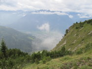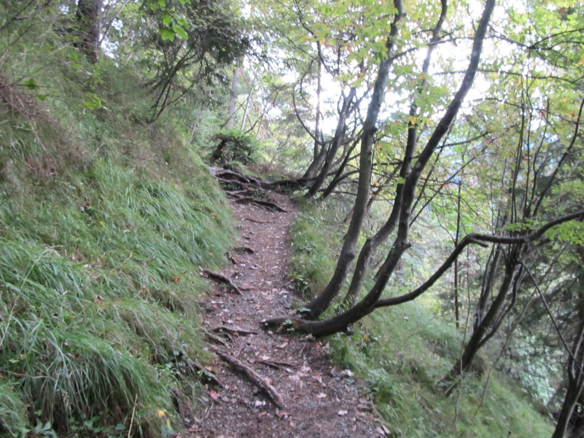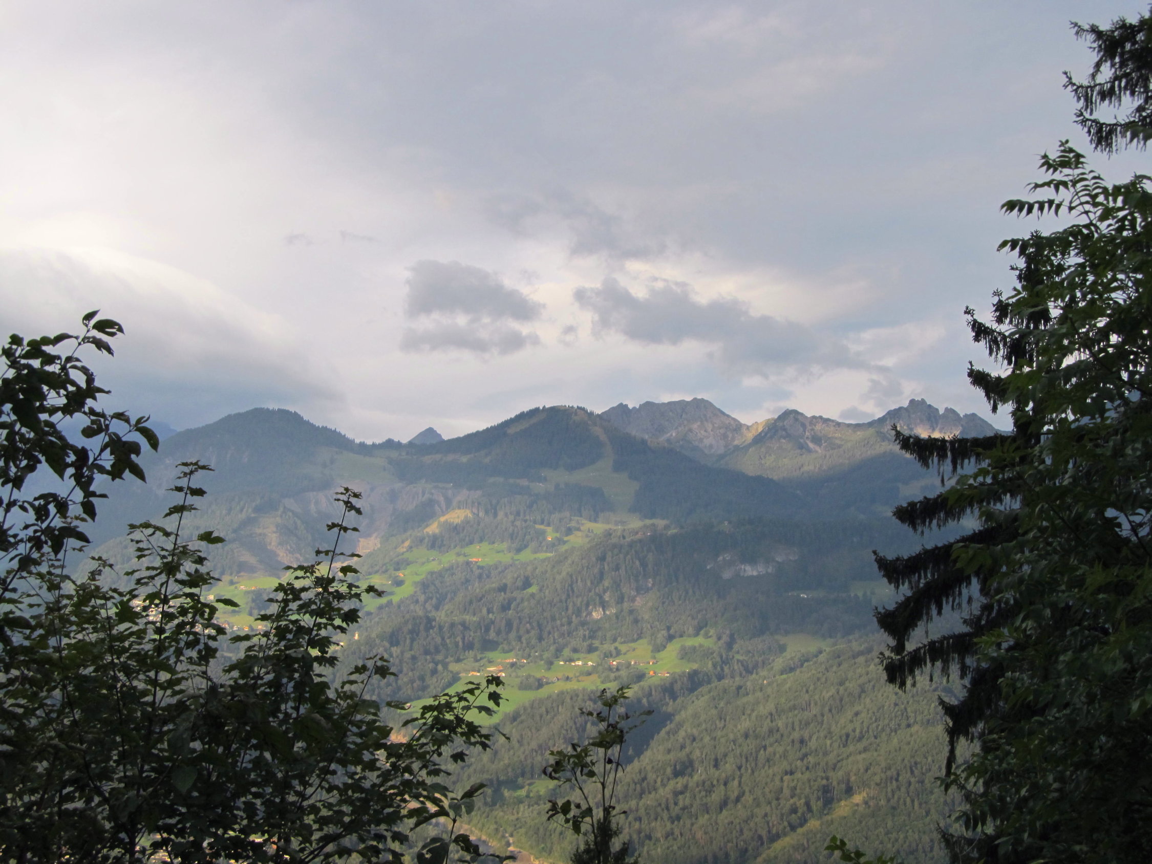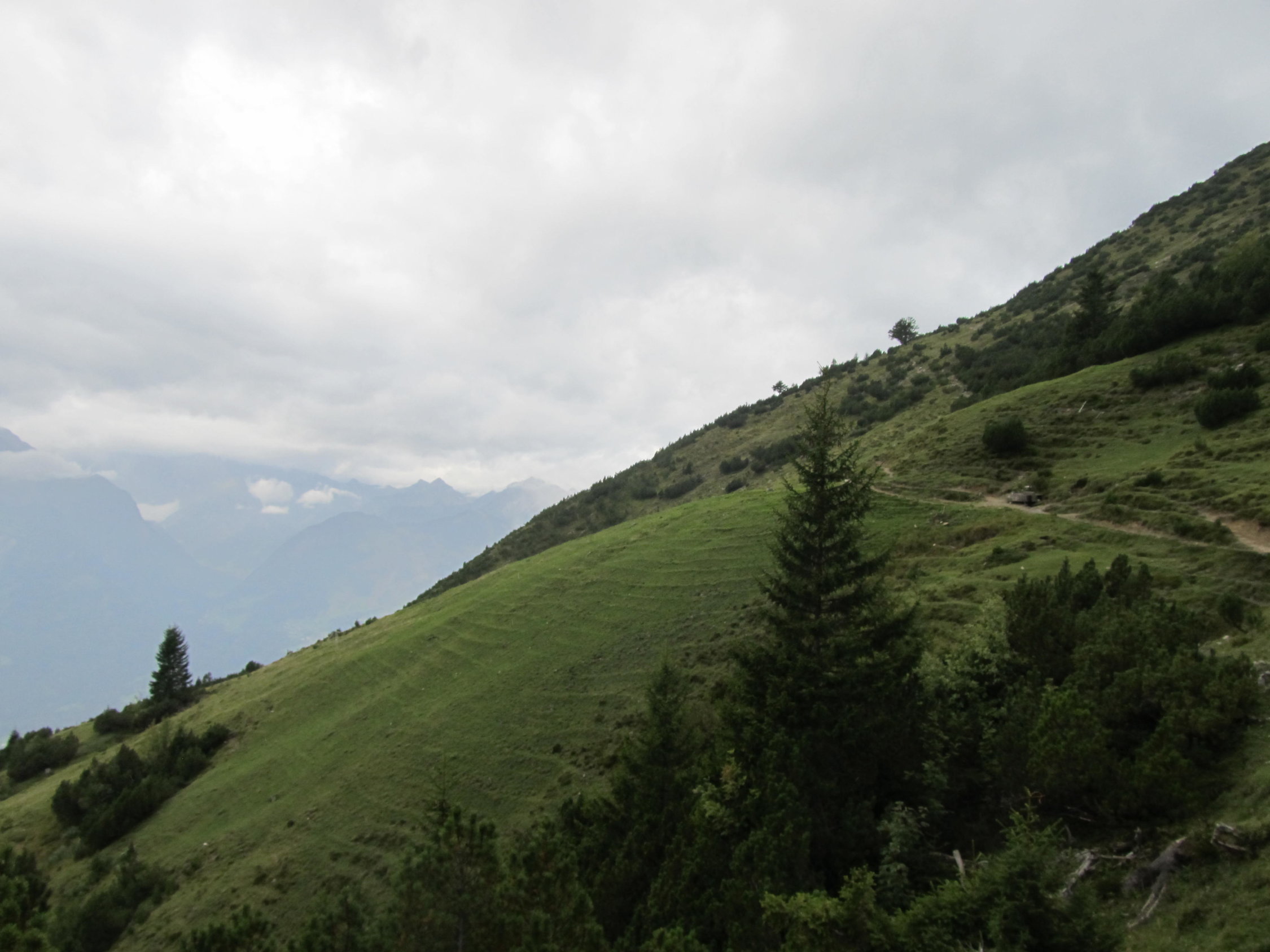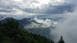 Auf der Suche nach einer regenfreien Region sind wir auf das "Walgau" gestoßen. Am Start war es föhnig und mild. Die hohen Berge im Rätikon steckten in dicken Wolken. Wenig Fernsicht, aber von ein paar Regentropfen abgesehen, trockene Verhältnisse bis zum Gipfel. Rasche Eintrübung nach der Ankunft. Leichter Regen setzte erst nach der Gipfelrast ein. Wir waren schon an der Muttersberg-Bergstation, als gegen 13.00 Uhr starker Regen einsetzte.